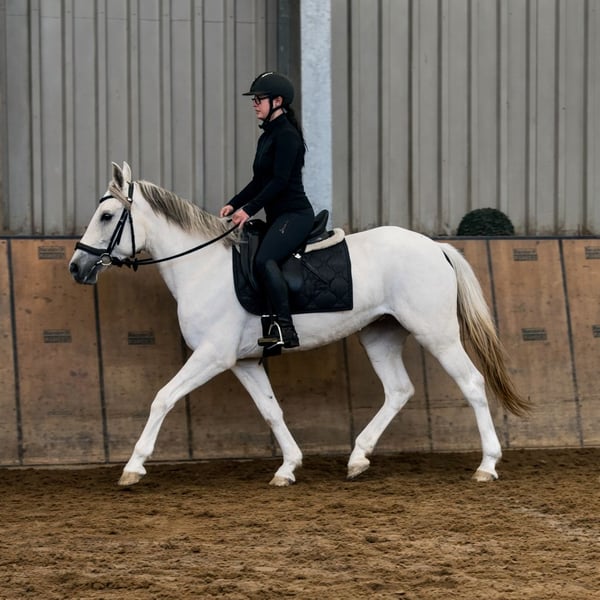 Name: Sorpresa Rasse: Cruzado, Kreuzung Geschlecht: Stute Geburtsdatum: 02.02.2021 Alter: 5 Stockmaß: 1.50m Farbe: Schimmel Abstammung: ohne Abstammungsnachweis Charakter: menschenbezogen, neugierig, intelligent, lernwillig, mutig, geduldig, gelassen Ausbildung/Eignung: Dressur, Freizeit, für Kinder geeignet Geländeerfahrung: aufmerksam, nervenstark, zuverlässig, unerschrocken, alleine und in der Gruppe Gesundheit: entwurmt, geimpft, Barhufer, ekzemfrei, Zähne kontrolliert, ostheopatisch behandelt Haltung: Box, Offenstall Besonderheiten: sehr sitzbequem, schmiede und verladefromm, herdenverträglich Die genannten Eigenschaften beruhen auf unserer persönlichen Einschätzung und stellen keine zugesicherten Merkmale dar. Preis: 5900 (Bruttopreis) Haben wir ihr Interesse geweckt? Um Ihnen einen besseren Eindruck von Sorpresa zu geben, senden wir Ihnen sehr gerne Ihr Reitvideo zu. Selbstverständlich stehen wir Ihnen für eine ausführliche Beschreibung des Pferdes, persönliche Beratung und zur Beantwortung aller Ihrer Fragen auch telefonisch zur Verfügung. Bitte schreiben Sie uns hierfür jederzeit eine WhatsApp Nachricht, oder rufen unter folgender Telefonnummer an: +49 15119487595 Unsere Telefonzeiten sind täglich von 7:00 - 13:30 sowie ab 20:00Uhr. Wir freuen uns über Ihre Kontaktaufnahme! Eine klinische oder Röntgenologische Ankaufsuntersuchung kann gerne vom Tierarzt Ihrer Wahl durchgeführt werden. Natürlich kann Sorpresa sicher und komfortabel in ihr neues Zuhause geliefert werden. Wir kümmern uns um alle notwendigen Vorbereitungen und den Transport, damit Ihr neues Pferd stressfrei, gut betreut, versichert und wohlbehalten im neuen Zuhause ankommt. Zurzeit präsentieren wir eine sorgfältig ausgewählte Vielfalt an Verkaufspferden. Bei uns finden Sie garantiert Ihr Traumpferd. Besuchen Sie uns auch gerne auf unserer Homepage unter: www.marvinsroyalhorses.de. Sehr geehrte Kunden, gerne stellen wir Ihnen unsere Pferde vor und führen, putzen, satteln, longieren, Bodenarbeit sowie Probereiten in der Reithalle, auf dem Platz oder im Gelände ist Ihnen möglich, um Ihr neues Familienmitglied näher kennenzulernen. Dieses kostet für ein Pferd 40€, für jedes weitere 30€ und wird beim Kauf wieder erstattet. Unsere Adresse lautet: Grube Ferdinand 50 53577 Neustadt Wied Google Maps: marvinsroyalhorses
