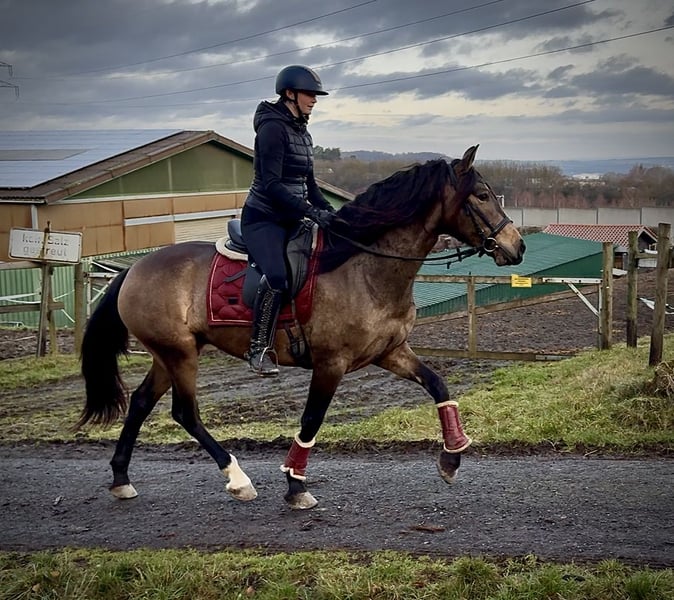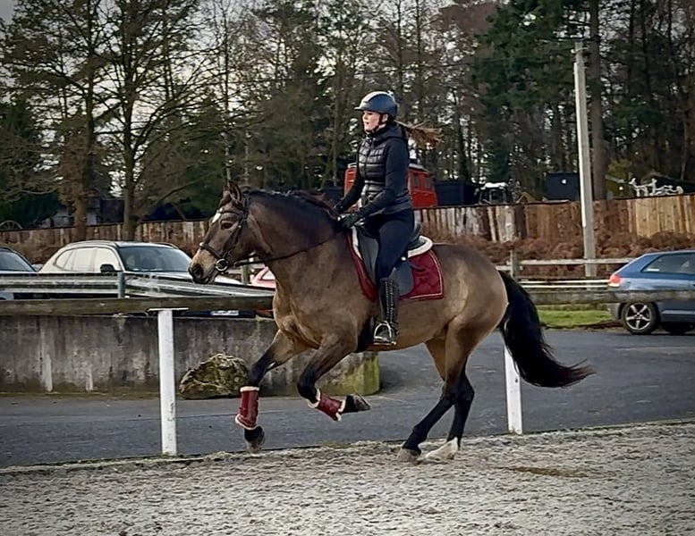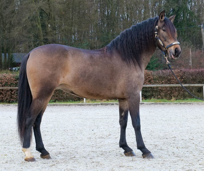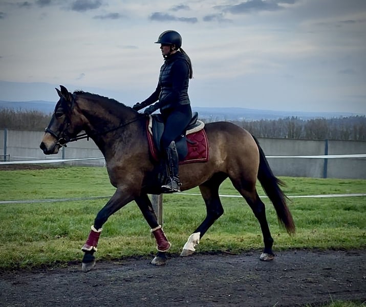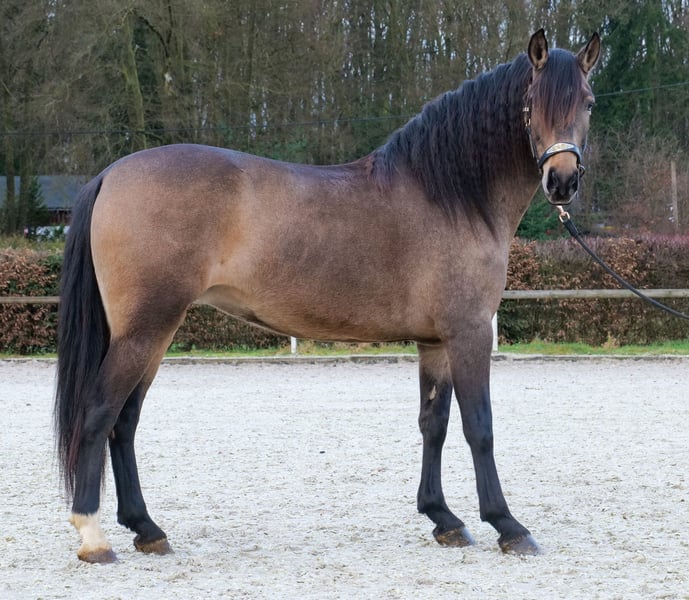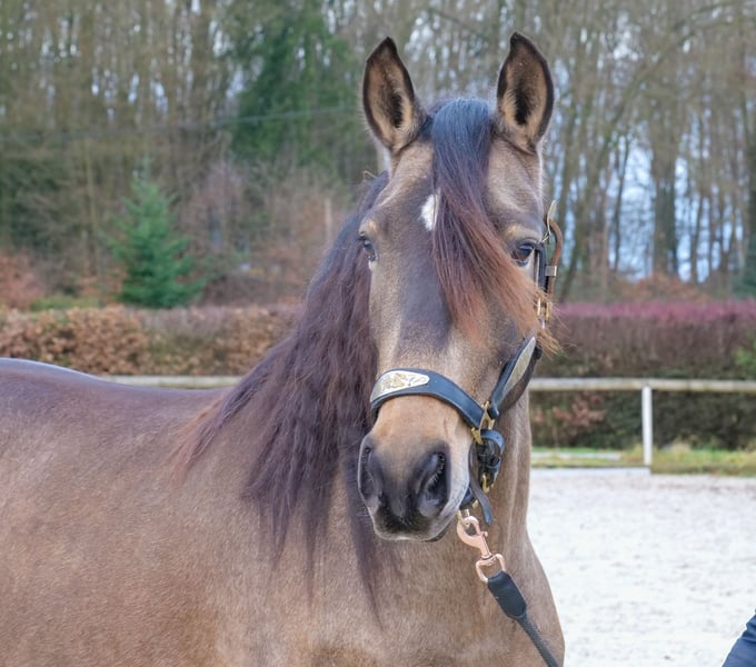 Name: Lucera Breed: Crossbred Gender: Mare Date of Birth: April 10, 2021 Age: 4 years Height: 15.7 hh Color: Buckskin Pedigree: No pedigree documentation available Temperament: eager to learn, curious, intelligent, brave, patient Training/Suitability: ridden, dressage, leisure riding, baroque riding, working equitation Trail Experience: attentive, steady nerves, reliable, fearless, confident alone and in groups Health: dewormed, vaccinated, barefoot, eczema-free, teeth checked, osteopathically treated Stabling: box stall, pasture turnout Special Features: farrier and loading-safe, herd-friendly Please note: The described characteristics are based on our personal assessment and do not constitute guaranteed traits. Price: €6,900 (including VAT) Have we piqued your interest? To give you a better impression of Lucera, we are happy to send you her riding video. Of course, we are available for a detailed description of the horse, personal consultation, and to answer all your questions by phone. Feel free to contact us anytime via WhatsApp or call us at: +49 151 19487595 Our phone hours are daily from 7:00 to 13:30 and from 20:00 onwards. We look forward to hearing from you! A clinical or radiological pre-purchase examination can be carried out by your veterinarian of choice. Lucera can be safely and comfortably delivered to her new home. We handle all preparations and transportation to ensure your new horse arrives stress-free, well cared for, insured, and in good health. Currently, we offer a carefully selected variety of sale horses. With us, you are sure to find your dream horse. Visit us also on our website at: www.marvinsroyalhorses.de Dear customers, we are happy to introduce you to our horses. You are welcome to lead, groom, saddle, longe, do groundwork, or take test rides in the riding hall, on the arena, or in the field to get to know your new family member better. The fee is €40 for one horse and €30 for each additional horse, and it will be refunded upon purchase. Our address: Ferdinand Street 50 53577 Neustadt-Wied Google Maps: marvinsroyalhorses
