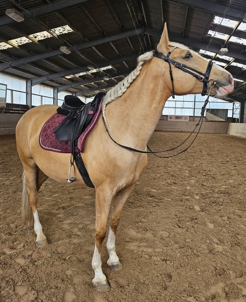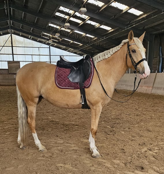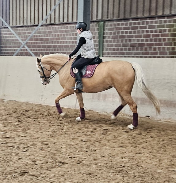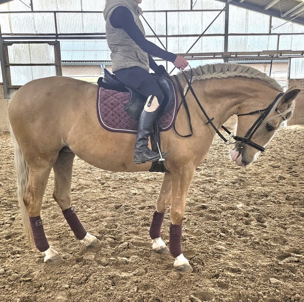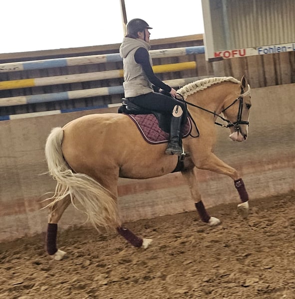 Zum Verkauf steht eine ausdrucksstarke, 2021 geborene Palomino Stute mit viel Potenzial. Sie ist ein echter Rohdiamant, der darauf wartet, gemeinsam mit ihrem Menschen weiter zu wachsen und sich zu entwickeln. Allgemeine Informationen · Geburtsjahr: Mai 2021 · Rasse: Cruzado · Geschlecht: Stute · Stockmaß: ca. 160 cm · Standort: Stall in der Nähe von 41569 Rommerskirchen Ausbildung & Erfahrung · Angeritten in allen drei Grundgangarten · War bereits im Gelände unterwegs und zeigt sich dabei brav und nervenstark · Longieren macht sie zuverlässig und gelassen mit · Hat große Freude an Bodenarbeit und lernt motiviert - Schmiedefromm: Kann sowohl Barhuf, als auch auf Eisen gehen - Verladefromm Charakter & Wesen Diese junge Stute besticht durch ihren hochanständigen, liebevollen und sehr offenen Charakter. Für ein iberisches Pferd zeigt sie in ihrem jungen Alter von knapp fünf Jahren eine bemerkenswerte Leichtigkeit im Umgang mit unterschiedlichen Menschen und Reitern. Sie ist sehr wach, aufmerksam und dabei stets unkompliziert. Sie ist lieb im Umgang, angenehm triebig und arbeitsfreudig – ein Pferd, das gefallen möchte und Spaß an gemeinsamer Arbeit hat. Genau deshalb ist sie ein ideales Partnerpferd für Reiterinnen oder Reiter, die gemeinsam mit ihrem Pferd wachsen, lernen und besser werden möchten. Wunschzuhause Aufgrund ihres tollen Charakters und ihres Potenzials soll diese besondere Stute in fördernde und liebevolle Hände abgegeben werden. Sie sucht einen Menschen, der Freude an Ausbildung, Geduld und gemeinsamer Entwicklung hat und ihr die Zeit gibt, sich weiter zu entfalten. Bei ernsthaftem Interesse und für weitere Informationen freuen ich mich über eine persönliche Kontaktaufnahme. Bei ernsthaftem Interesse Kontakt via mobil: 01578 2141313