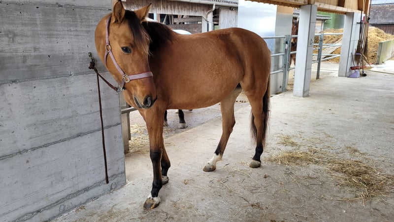 2020 geboren und ca. 155cm gross besticht sie durch ihren liebevollen und dem Menschen zugewandten Charakter. - geht alleine oder in der Gruppe ins Gelände. Läuft auch in unbekanntem Gelände vorne - hat einen angenehmen Vorwärtsdrang - kein Bocken und Steigen unter dem Reiter - barhuf, eher rangniederig und Herdenhaltung gewohnt - in den letzten 1.5 Jahren fein unter dem Sattel und vom Boden gearbeitet - Regelmässige Hufbearbeitung, Zahnkontrolle (Herbst 2025) und Osteopathie - vorsichtig und liebevoll mit Kindern - kein Gewichtsträger - Röntgenbilder (inkl. Rücken) Herbst 2023 ohne Befund liegen vor und dürfen gerne eingesehen werden. Sie hat einen angepassten Dressur- wie auch Springsattel, welche zusätzlich gekauft werden können.