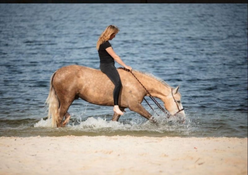 🍏🍎 APPLE 🍎🍏 Ben jij opzoek naar een veelzijdig paard, die haar looks mee heeft, en jou wat uitdaging biedt in het rijden? Dan lees vooral even verder! Apple is een 7 jarige merrie die al 1 prachtige gezonde veulen op de wereld heeft mogen zetten. Op haar paspoort wordt ze omschreven als een cruzado, maar wij denken dat er ook wat Quarter bloed in haar zit. Apple is 1,5 jaar geleden getraind door Trudy Vd Plas, waarna zij in de manege lessen zou gaan lopen. Helaas was dit geen succes in verband met haar onzekere karakter. En staat ze nu weer terug bij Trudy van der Plas in Boekel om het juiste huisje voor haar te vinden. Apple heeft behoefte aan 1 ruiter, die weet wat ze wilt, zodat Apple daar in kan volgen. Dat betekent absoluut niet dat ze gevaarlijk is of wat dan ook, sterkter nog; het is een paard wat nooit zal schrikken. In de bossen vindt ze het dan ook het leukste! Is 1000% verkeersmak maar in de bak heeft ze gewoon een duidelijke hand nodig. In de omgang is ze lief, aanhankelijk en eerlijk, maar ook sensibel. Apple hecht zich sterk aan één persoon en bloeit op bij vertrouwen en consequentheid. Zodra ze die klik voelt, gaat ze helemaal voor je. - Spaanse mix merrie - Geboren: 01-04-2019 - Hoogte: om en nabij 1.55 m - Lief, sensibel en trouw karakter - Niet geschikt voor beginners - Ben jij die ervaren ruiter die haar met rust, vertrouwen en liefde verder wil begeleiden? Ben jij die ruiter? Neem dan snel contact met een van ons voor het maken van een afspraak of om video's op te vragen. Apple is altijd netjes geënt, ontwormd etc. En kent geen gebreken. Keuren door een eigen dierenarts is toegestaan K.K.