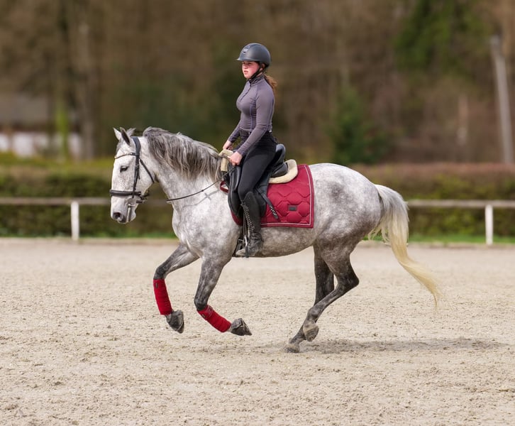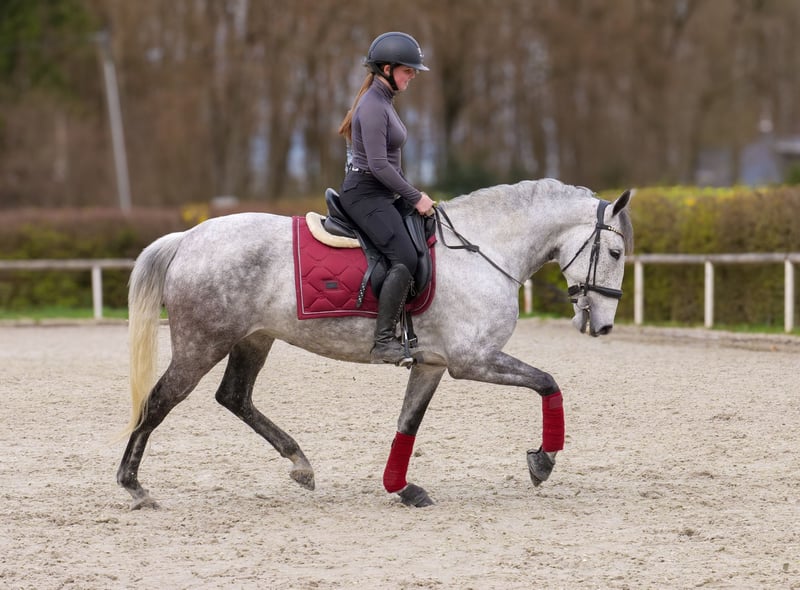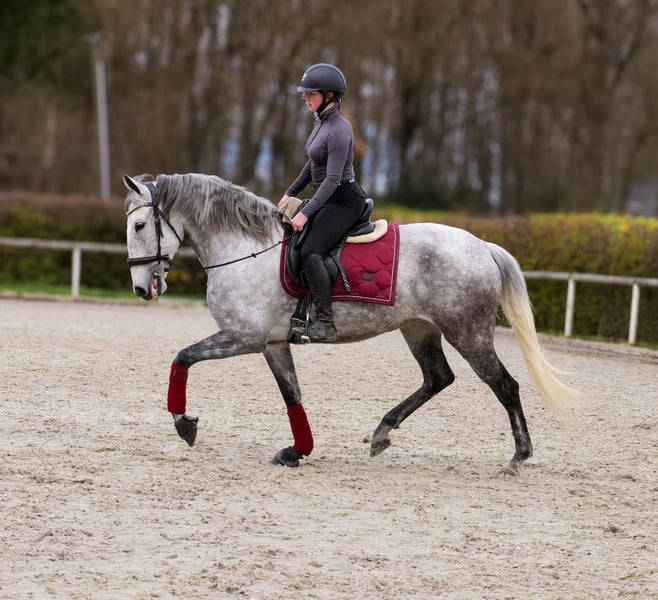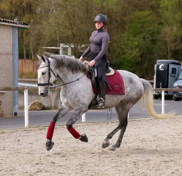 Name: Nuvem Rasse: Cruzado, Kreuzung Geschlecht: Stute Geburtsdatum: 02.04.2017 Alter: 9 Stockmaß: 1.55m Farbe: Fliegenschimmel Abstammung: ohne Abstammungsnachweis Charakter: menschenbezogen, neugierig, intelligent, lernwillig, geduldig, gelassen Ausbildung/Eignung: geritten, Dressur, Freizeit, Working Equitation, Barock, für Kinder geeignet, Schulpferd Geländeerfahrung: nervenstark, zuverlässig, unerschrocken, alleine und in der Gruppe Gesundheit: entwurmt, geimpft, ekzemfrei, Zähne kontrolliert, osteopathisch behandelt Haltung: Box, Offenstall Besonderheiten: sehr sitzbequem, schmiede und verladefromm, herdenverträglich Die genannten Eigenschaften beruhen auf unserer persönlichen Einschätzung und stellen keine zugesicherten Merkmale dar. Preis: 8900 (Bruttopreis) Haben wir ihr Interesse geweckt? Um Ihnen einen besseren Eindruck von Nuvem zu geben, senden wir Ihnen sehr gerne Ihr Reitvideo zu. Selbstverständlich stehen wir Ihnen für eine ausführliche Beschreibung des Pferdes, persönliche Beratung und zur Beantwortung aller Ihrer Fragen auch telefonisch zur Verfügung. Bitte schreiben Sie uns hierfür jederzeit eine WhatsApp Nachricht, oder rufen unter folgender Telefonnummer an: +49 15119487595 Unsere Telefonzeiten sind täglich von 7:00 - 13:30 sowie ab 20:00Uhr. Wir freuen uns über Ihre Kontaktaufnahme! Eine klinische oder Röntgenologische Ankaufsuntersuchung kann gerne vom Tierarzt Ihrer Wahl durchgeführt werden. Natürlich kann Nuvem sicher und komfortabel in ihr neues Zuhause geliefert werden. Wir kümmern uns um alle notwendigen Vorbereitungen und den Transport, damit Ihr neues Pferd stressfrei, gut betreut, versichert und wohlbehalten im neuen Zuhause ankommt. Zurzeit präsentieren wir eine sorgfältig ausgewählte Vielfalt an Verkaufspferden. Bei uns finden Sie garantiert Ihr Traumpferd. Besuchen Sie uns auch gerne auf unserer Homepage unter: www.marvinsroyalhorses.de. Sehr geehrte Kunden, gerne stellen wir Ihnen unsere Pferde vor und führen, putzen, satteln, longieren, Bodenarbeit sowie Probereiten in der Reithalle, auf dem Platz oder im Gelände ist Ihnen möglich, um Ihr neues Familienmitglied näher kennenzulernen. Dieses kostet für ein Pferd 40€, für jedes weitere 30€ und wird beim Kauf wieder erstattet. Unsere Adresse lautet: Grube Ferdinand 50 53577 Neustadt Wied Google Maps: marvinsroyalhorses