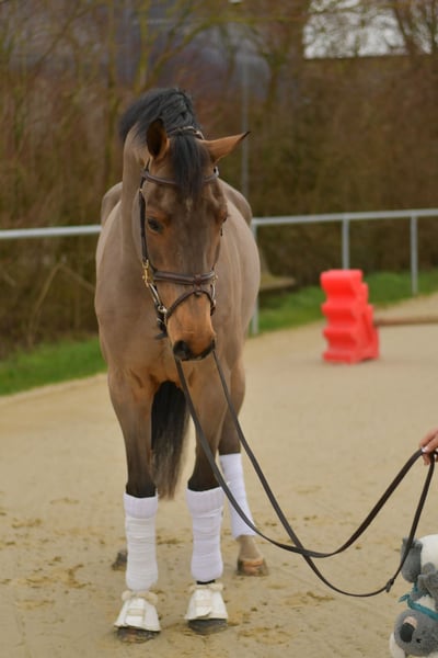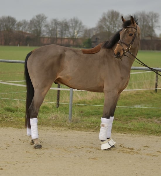 **Vic, Our Beautiful Dressage Horse** Discover our exceptional dressage horse – a true gem with *three outstanding elastic gaits*! With an excellent walk and a lively, expressive trot, this horse offers impressive movement potential, which is one of his greatest strengths. We care for this lovely fellow daily with joy and passion. He possesses a lot of quality and has a good heart. Unfortunately, he has not been optimally trained recently and now requires the right riding approach to fully realize his potential. During his time with us, we are working intensively on developing his abilities. As a young horse, he has already participated in several competitions and shows great talent. Whether you are looking for a reliable partner for entering the competition arena or for ambitious leisure riding, this horse is exactly what you need! **Special Offer:** Immediate purchase comes with a 5% discount on the sale price! **Test Opportunity:** Take the chance to test this horse with us for one week. This trial week can be accompanied by talented trainers, and you have the option to combine it with riding lessons. Please note that a trial fee applies, which is not deducted from the purchase price. **Pre-Ride/Trial Ride:** You are welcome to come and see our treasure in person. The cost for a pre-ride or trial ride is €30 per person. Don’t miss this opportunity! Our wonderful dressage horse is seeking a nurturing hand and is eager for new challenges. Visit us and see for yourself!