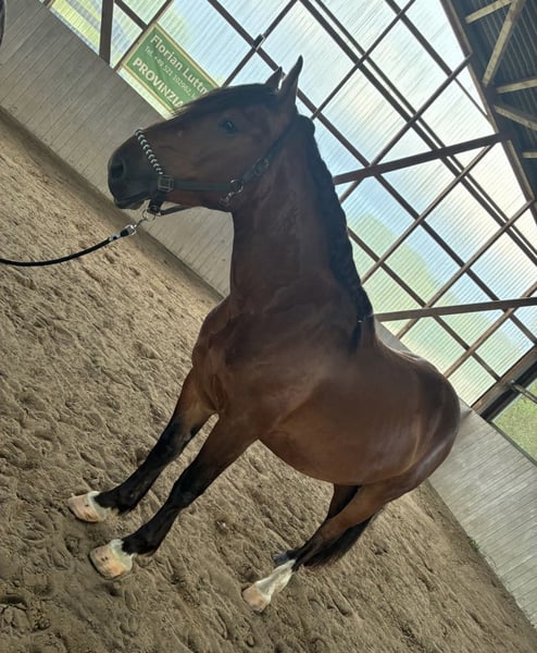 For sale is our 4-year-old gelding Titus, a heavy warmblood with an current height of approximately 16.0 hh. Titus has been trained by us using natural horsemanship methods, allowing him to learn at his own pace. He is already familiar with a bridle, saddle pad, and rider’s weight. When led in the company of another horse, he confidently ventures out on the trail. He shows no fear and is very brave. He is vaccinated, regularly dewormed, and has been introduced to the farrier. Titus currently lives in a loose box, is very social, and easy to handle around other horses. We are looking for a home with similar keeping conditions. A friendly, curious young gelding who wants to be challenged and further trained. Unfortunately, we do not have enough time to meet his potential. If you are genuinely interested, we look forward to hearing from you.