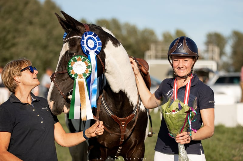 Dashing B is my first offspring on my former 4* eventing mare ‘Incredible B’. His great dam is of unknown pedigree, but competed successfully in inventing up to CCI3* with me, even though she was only 156 cm as well. For some reason he stopped growing too early and is unfortunately too small for me. The only thing on him that is not pony-sized, is his height. He shows a great technique in jumping and has a very cool mind and temper. He was broken in last summer, but due to lack of time, he hasn’t been ridden since. He is bred for eventing, but could also be a good showjumper or a luxury version of a leisure horse. In 2023 he went through OCD screening including oxspring views of naviculars with no remarks. All of his siblings are also clean on X-rays. All photos and videos with a rider (me) are of his mom. The right home is more important than the price.