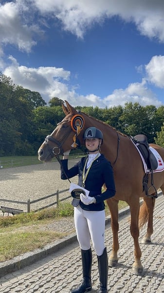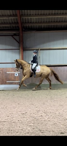 KK’s Look At Me ist ein beeindruckender Wallach mit drei hervorragenden Grundgangarten. Er hat einen großen, raumgreifenden Schritt, einen schwungvollen, federnden Trab und einen großzügigen, weitläufigen Galopp. Sein wunderbares Temperament macht ihn stets zu einer Freude, auch auf Turnieren, da er niemals guckt oder scheut – ein echter Gentleman. Ausbildung & Erfolge Look ist erfolgreich bis einschließlich MB2 gestartet und ist nun bereit für MA + PSG. Er zeigt schöne gerade Wechselserien in 4er-, 3er- und 2er-Wechseln mit großen Sprüngen und hat mit den Einer-Wechseln begonnen. Er lässt sich leicht und fein reiten und geht auch sehr gerne ins Gelände. Er hat zahlreiche schöne Ergebnisse erzielt, u. a. Platzierungen bei 4/4 Meisterschaften. Look ist ein Pferd, das man auf dem Turnierplatz sofort bemerkt. Immer fröhlich mit gespitzten Ohren ist er bereit, für seinen Reiter durchs Feuer zu gehen. Einsatzmöglichkeiten Er wäre ein ideales Pferd für Junioren/Young Rider, aber auch für den anspruchsvollen Reiter, der sich ein korrekt ausgebildetes und bestens trainiertes Pferd wünscht. Gesundheit & Pflege Look war stets gesund und unverletzt. Er wird nur vorne beschlagen. Regelmäßig betreut von Schmied, Zahnarzt, Physiotherapeut, Masseur und Sattler. Röntgenbilder liegen aktuell vor. Besonderheiten Hier bietet sich die seltene Gelegenheit, einen hervorragend ausgebildeten und gepflegten Goldschatz zu erwerben. Die Entscheidung fällt uns nicht leicht – daher hat das richtige Zuhause Vorrang vor dem Preis. Der Verkauf erfolgt ausschließlich aufgrund des Studienbeginns der Reiterin.