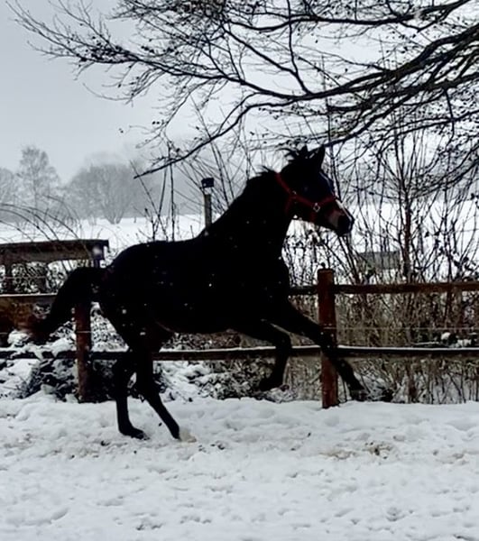 Erstaunliche Stute von Bueno SL/Rockefeller/Michellino. Sehr gut beweglich mit drei fantastischen Gängen und viel Kraft. Sie ist schön gebaut, mit langen Beinen, und wird in den großen Arenen der Zukunft beeindruckend sein. Sie ist liebenswert und anhänglich und liebt den Kontakt zu Menschen. Das letzte Bild zeigt ihre Mutter. Zögern Sie nicht, mich für weitere Informationen zu kontaktieren.