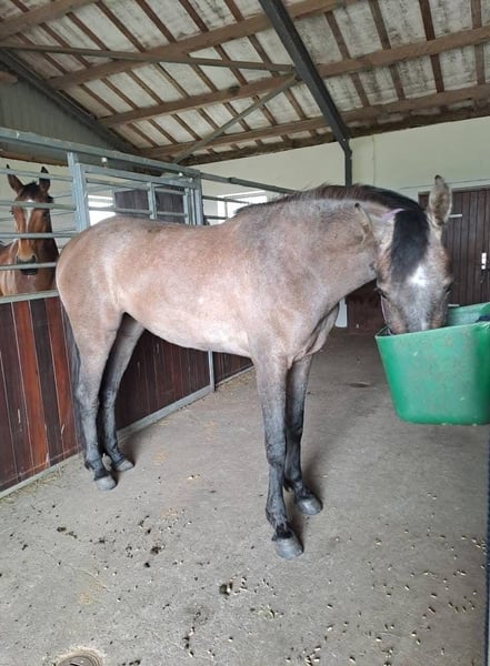 Lovely 3 year old mare out of super jumping lineage. in longe. Easy and unproblematic in all aspects. Care with blacksmith and veterinarian. The horse you can put your own mark on. Ready to start with in 2026