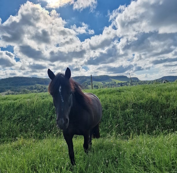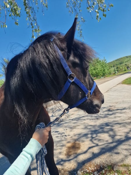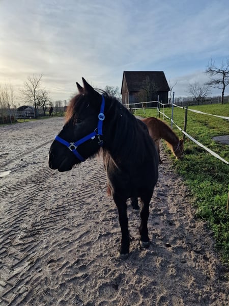Hallo, schön dass sie sich für unser Pony interessieren. Rasse : Mix aus Dartmoor und Island Pony steht in Robusthaltung in großer gemischten Herde w/s / Offenstall - Herdenhaltung mit 24/7 Weidegang ABSOLUT herdenverträglich und eher rangniedrig. Schweren Herzens haben wir uns dazu entschieden unser Pony abzugeben. Da ich keine ( Art) -Hippolini-Reiten mehr anbiete und sie für meine eigenen ,,kleinen Kinder,, nur schwer alleine zu reiten ist, suchen wir für sie ein neues Zuhause wo man ihren Bedürfnissen gerecht wird. Sie lässt sich von meinen Kindern anstandslos putzen, gibt brav und zuverlässig Hufe. Sie ist ein absolut liebes, braves und anständiges Pony beim Verladen und beim Hufschmied. Sie wird regelmäßig geimpft, geht regelmäßig zum Zahnarzt ( zwei Zähne fehlen ihr/dadurch KEINE Beeinträchtigung beim Fressen) und hat KEINE REHE. Sie liebt Geländeausritte und macht fleißig und aufmerksam Bodenarbeit mit. Für Anfänger ist sie jedoch zum Reiten lernen, nicht geeignet. Sie benötigt einen Reiter der ihr klare Hilfen geben kann und sich klar und deutlich durchsetzen kann. Sie mag keine ständig wechselnden Reiter, ich wünsche mir für sie einen Reiter der Spaß und Freude an Bodenarbeit und Freizeitreiten, hauptsächlich ins Gelände hat. Ob sie jemals vor der Kutsche stand wissen wir nicht, bei uns wurde sie nicht gefahren. Als Handpferd für ein beispielsweise Mutter - Kind - Team auch denkbar, ebenso für für Zucht oder Beistellpony denkbar. Vielleicht sucht ja jemand genau so ein tolles Pony.... Preisverhandlungen möchte ich im Vorfeld nicht tätigen und werden ignoriert, darüber möchte ich mich gerne unterhalten, wenn ein ernsthaftes Interesse besteht und ich sehe wo sie hinkommen würde und ob die Chemie zwischen neuem Besitzer und Pferd stimmt .. (Platz vor Preis)