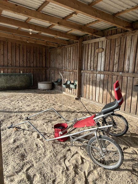 Draft Pony with Sulky and Equipment for Sale We are offering an 8-year-old, small German pony mare (Dartmoor x Classic Pony) from a good breeding line, approximately 118 cm at the withers. Breeder: Bavarian Breeding Association for Small Horses and Special Breeds e.V. The price includes a Hülsmann sulky with a bag (stainless steel, durable) and equipment from Sieltec + Marathon harness made of leather. Sale also possible without the equipment. Further accessories available on request (e.g., hoof boots, ...). She is experienced driving in front of the sulky and equally comfortable paired in a team with a marathon cart. She is lively, strong-willed, quickly recovers from startle moments, sensitive, brave, and of medium ranking. She is intelligent and always bonds well with her handler, adapts easily to her herd size, and fits into various environments. She simply makes riding fun. Her affectionate nature makes her easy to like. Moon is on pasture year-round and only comes into her stable, a sand paddock, at night. She has also spent nights in a box, which is no problem for her. She is used to being outdoors during the day for at least 8 hours. We have never encountered laminitis. She is very eager to move and needs access to pasture. She has never been seriously ill under my care. She is a healthy animal, as far as I can tell. Her hooves are top-quality—firm yet elastic. We ride barefoot, and she has no cracks or splinters. Her coat is shiny, healthy, and she requires very little, high-quality feed. I feed her naturally; she has never seen conventional feed. She is regularly checked by my hoof care specialist and our equine dentist. Her teeth are excellent. She is an absolute adult pony. I can easily imagine her excelling in endurance riding, as she is very enduring and eager to move. Training based on Alexandra König, Saliho School. I longe her free in the riding arena without many aids. Liberty work with her is very enjoyable. She is definitely not a children's pony! Of course, she loves children—if they don't sit on her ;). She is fearless and has no issues with trucks, tractors, or dogs. On the contrary, she is very curious and sticks her nose into every open stroller. The only thing she absolutely cannot tolerate is haylage. High-quality, homemade haylage is still not tolerated! If you follow this advice, you won’t need a vet. However, feeding haylage regularly for about four weeks will likely result in frequent vet visits. She can stay at her current location. It is a beautiful open stable with very diverse riding terrain right outside the door. It is a self-sufficient stable with very low costs by today’s standards. I am a animal communicator and animal healer, and I am selling her due to emigrating. If it were possible, I would take her with me. She is my absolute heart pony, and I know I can let her go because a loving and experienced person will find her. - Very experienced driving in front of the sulky - Double harnessed in a team - Healthy, in my opinion - Easy to handle - Interesting for breeding - Suitable for sport - An adult pony - Comes with ownership certificate, pedigree, and equine passport Please note: She absolutely does not want to be ridden! Not even a “quick ride”! She has not been backed. Also, she cannot tolerate haylage! There is much more to tell, but that would go beyond the scope of this ad. A phone call can answer all questions. More pictures and videos will only be sent after a phone conversation. Serious inquiries only, please! Price negotiable