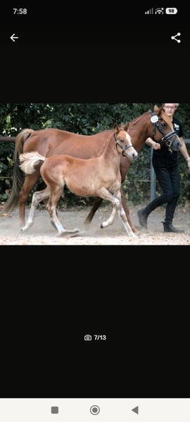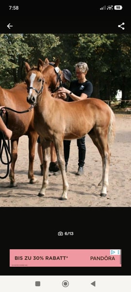 Verkauft wird ein wunderschönes Hengstfohlen mit Fohlenprämie. Wir freuen uns, Ihnen ein wunderschönes Reitpony x Vollblutaraber Fohlen aus diesem Jahr mit halbem Papier vom ZSSE anzubieten. Dieses bezaubernde Hengst stammt von einem Vollblutaraberhengt, der erfolgreich am 30-Tage-Test in Handorf teilgenommen hat und durch seine ausgezeichneten Eigenschaften überzeugt ab. Die Mutter des Fohlens ist eine Reitponystute mit sehr guten Grundgangarten. Unser Hengstfohlen wurde regelmäßig entwurmt, ist geimpft, hat bereits positive Erfahrungen beim Hufschmied gesammelt und wächst glücklich im Herdenverband auf den Wiesen auf. Es zeigt ein aufgewecktes und ausgeglichenes Wesen, perfekt für zukünftige Herausforderungen. Altersentsprechend ist es komplett roh und bereit, vielseitig gefördert zu werden. Endmaß des Fohlens vorraussichtlich ca. 148 cm. Für weitere Fragen oder zur Vereinbarung eines Besichtigungstermins stehen wir Ihnen gerne zur Verfügung.