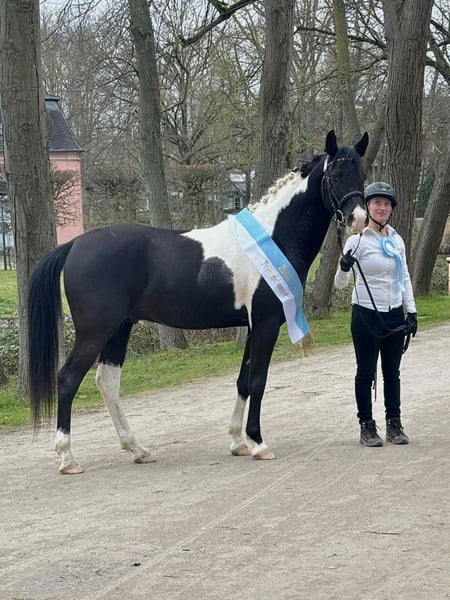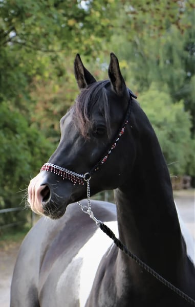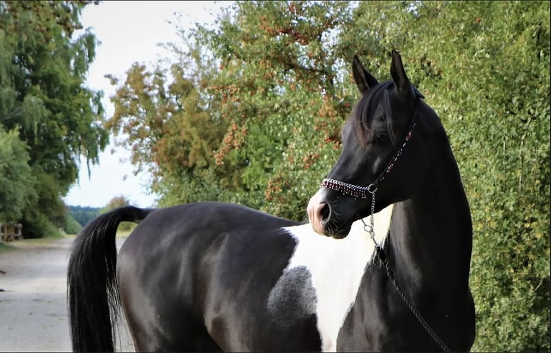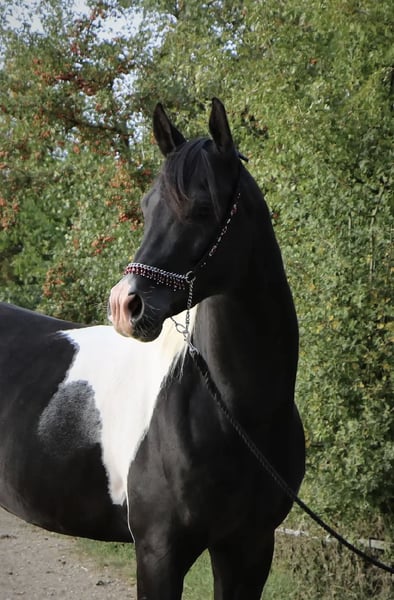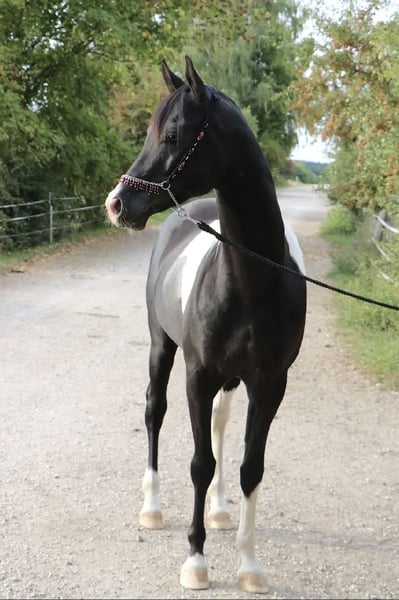 Mounir ist ein sehr liebevoller, dem Menschen zugewandter Pintabian Hengst. Er ist fleißig und lernwillig, will stets gefallen und ist bemüht immer alles richtig zu machen. Die „Arbeit“ mit ihm macht richtig Spaß da er immer sehr motiviert ist, er hat einfach Freude an der Zeit die er mit seinem Menschen verbringt. Er sucht regelrecht die Aufmerksamkeit und versucht sich in seiner Gruppe in den Vordergrund zu stellen wenn jemand den Stall oder die Koppel betritt. Mounir ist 2025 beim ZSAA gekört und prämiert. Er ist ein sehr typvoller maskuliner Hengst mit kräftiger Substanz. Er besitzt eine gute Halsung und eine große genügend schräge Schulter, eine geschwungene Oberlinie mit guter Anbindung in eine gut behoste runde Kruppe. Passendes trockenes Fundament mit guter Röhre (20 cm). - Schmiedefromm - Verladefromm - kennt Bodenarbeit - kennt Sattel - kennt Longe Spaziergänge alleine oder in der Gruppe sind kein Problem. Ob am Putzplatz, in der Reithalle oder auf dem Reitplatz zwischen Wallachen und Stute ist er immer anständig und ansprechbar. SCID und CA frei