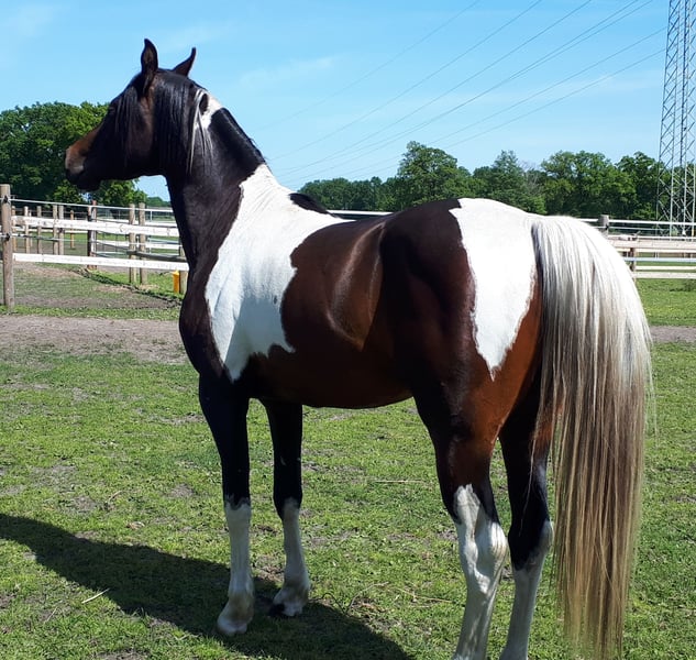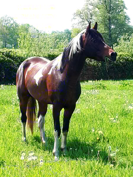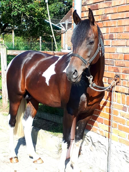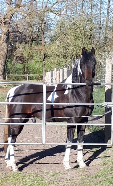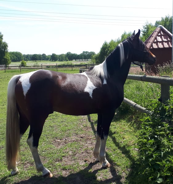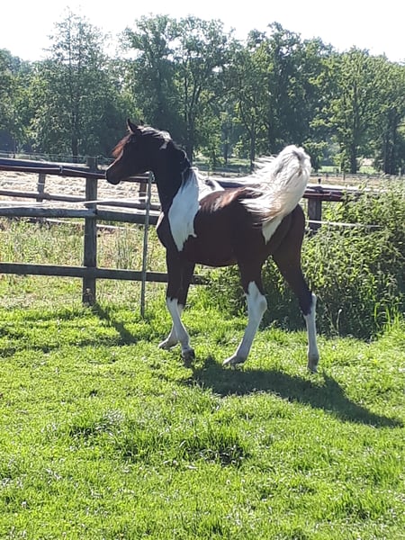 Pintabian 99,7 % ox 01.04.2020 1,53m Stock Heterzygot Tobiano Gekört beim VZAP Geritten, umgänglich, deckt an der Hand 4 Fohlen 3x Stute 3x Tobiano Bei einem passenden Zuhause würden wir uns von unserem Traumhengst trennen.