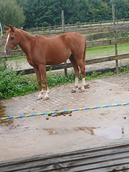Wegen Aufgabe des Reitsports aus persönlichen Gründen muss ich mich leider von meinem Bommel trennen. Bommel ist ein sehr freudiger, aufgeweckt und personenbezogener 11 Jahre alter Araberwallach. Er ist rassetypisch sensibel und sehr brav. Sowohl auf dem Platz, im Gelände, beim Longieren und auch im Umgang. Auch geführtes Kinderreiten hat er schon brav mitgemacht. Longieren gefällt ihm ebenfalls sehr, er reagiert fein auf die Hilfen und vor allem auf die Stimme. Er macht auch gerne und motiviert kleinere Sprünge und Stangenarbeit. Da er eher sensibel ist, ist er kein reines Anfängerpferd. Er ist sehr verträglich mit anderen Pferden, brav beim Hufschmied und im Umgang. Im Moment steht er in einem Offenstall. Sämtliches Zubehör kann miterworben werden. Er ist entwurmt und Tetanus/ Influenza geimpft. Bei Interesse bitte WhatsApp an 016090340352