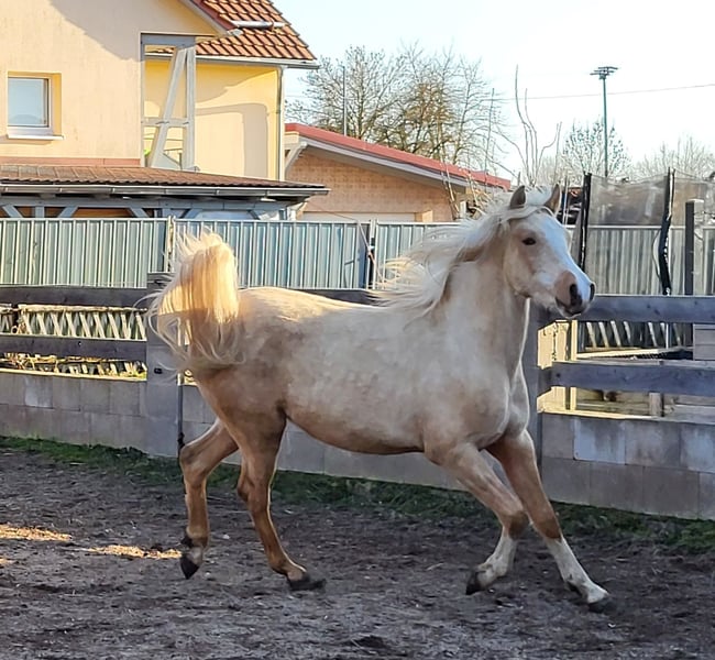 **Verkaufsanzeige: Arabisches Partbred – Palomino-Wallach, geb. 2024, 154 cm** Zum Verkauf steht ein vielversprechender arabisches Partbred-Wallach, geboren im April 2024 aus einer ägyptischen Vollblutstute und einem Partbred Hengst. Malik ist in einer gemischten Herde in Offenstall- bzw. im Sommer Weidehaltung aufgewachsen. Er gibt brav Hufe, lässt sich gerne ausgiebig putzen, ist altersgemäs erzogen, gesund, regelmäßig entwurmt und frei von bekannten Krankheiten. Wir wünschen uns für ihn ein zu Hause mit Weide- und Herdenhaltung. Platz vor Preis. Bei Interesse gern mehr per Telefon.