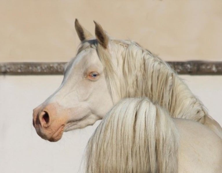 FRANCE , à voir superbe jument demi sang arabe 75 % ar de robe creme , poulinière fabuleuse , top origines , non débourrée mais pourrait l etre , très facile , origines performer en cso , endurance ..photos son père palomino , photos de sa production disponible LOCATED FRANCE ,fabulous part bred cremello arab mare 75% ar , very good broodmare her foals will be 100 % color , unbroken , but could be easily, very nice mare palomino in photo her father . photos and videos of her foals available