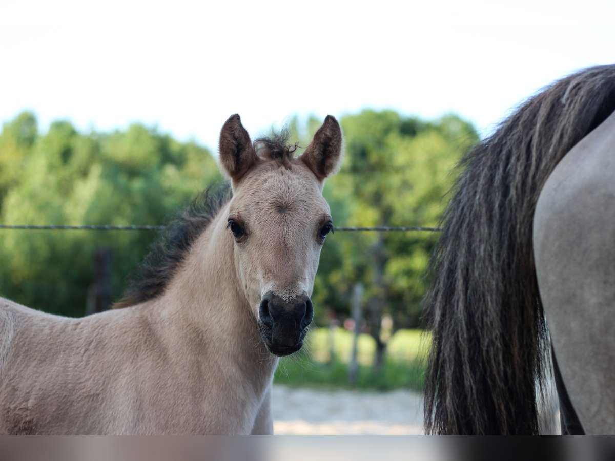 The dark foal is named Djuna and is the daughter of Kalla, a Fjord mare owned by Anton. Her sire is EA Jameel, a black Arabian purebred stallion. Djuna has full NRPS registration papers, is broadly built, and moves beautifully. She is expected to reach approximately 14.5 hands and could be a future riding horse for adults due to her strong Fjord-type conformation. Since her father is black, Djuna may also produce black or grullo foals later on. The lighter foal is Doebai, her mother is Baika, my small (about 14.0 hh) Arabian cross mare. Her sire is the Fjord stallion Loebas. Doebai is an incredibly sweet, gentle filly, easy to handle, and very human-oriented. She has NRPS B-register papers. She is solidly built with notably long legs and will grow significantly larger than her mother, likely over 14.5 hands, making her suitable for adult riders. Doebai is herself a wild dun (bay dun) and her mother is grullo, so she may also produce grullo foals later. She is possibly homozygous for the dun gene. Doebai’s mother could also be rehomed to the right family; she is used for recreational riding, easy to handle, becomes pregnant easily, and is a loving mother. The foals are raised in a mare herd here at our farm and have already experienced quite a bit. They live outdoors 24/7, are very healthy, accustomed to children, as well as forklifts and tractors, and are social within the group. They can be weaned and moved to a new home from February, at around 8-9 months of age. The mothers and Djuna’s older sister are also available for viewing, and I am in contact with previous foals from these mares. Finding a good home is very important to me! I am asking €2,500 per foal, and if they go to a good home together, there is some room for negotiation. Additionally, I have a Welsh A filly available (see last photos).