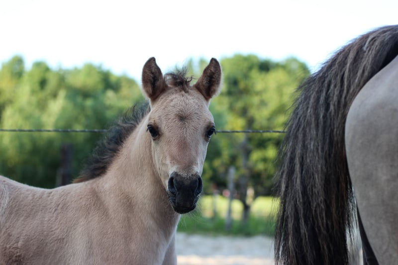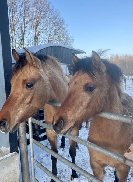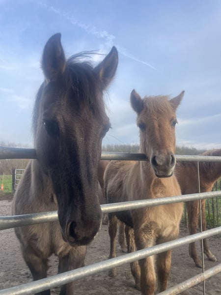 Het donkere veulen heet Djuna en is de dochter van Kalla, fjordenmerrie van Anton. De vader is EA Jameel, een zwarte Arabische volbloedhengst. Djuna heeft een vol NRPS papier, is breed gebouwd en kan prachtig bewegen. Ze zal rond de 145 worden, ook een toekomstig rijpaard voor volwassenen door haar brede fjordenbouw. Aangezien haar vader zwart is zal Djuna later ook zwarte en grullo veulens kunnen krijgen. De lichte is Doebai, haar moeder is baika, mijn kleine (1.40) Arabier kruising merrie. Vader is de fjordenhengst Loebas. Doebai is echt een onwijs lief zacht merrieveulen, makkelijk in de omgang en zeer mensgericht. Ze heeft NRPS b-register papieren. Ze is stevig gebouwd en opvallend lange benen, ze zal flink groter worden dan haar moeder, zeker 1.45 en door haar bouw ook zeker geschikt voor volwassenen. Doebai is zelf red dun (wildkleur vos) en haar moeder is grullo en zal daardoor later ook grullo veulens kunnen krijgen. Ze is mogelijk homozygoot wildkleur. De moeder van Doebai zou voor het juiste huis ook mogen verhuizen, ze is recreatief bereden, makkelijk in de omgang, wordt makkelijk drachtig en is een lieve moeder. De veulens groeien hier op in een merriekudde bij ons aan huis op de boerderij en hebben daardoor al lekker wat meegemaakt. Ze wonen 24/7 buiten, zijn zeer gezond, zijn kinderen gewend, net als heftrucks en tractors en ze zijn sociaal in de groep. Ze mogen vanaf februari afgespeend worden en verhuizen. Ze zijn dan 8-9 maanden. De moeders en de grote zus van Djuna zijn hier ook te bezichtigen en ik heb nog contact met de eerdere veulens van deze merries, een goed huis vind ik erg belangrijk! Ik vraag 2500 euro per veulen en als ze samen een goede plek vinden kan daar nog wel over onderhandeld worden. Ik heb ook nog een welsh A merrieveulen beschikbaar (laatste foto's).