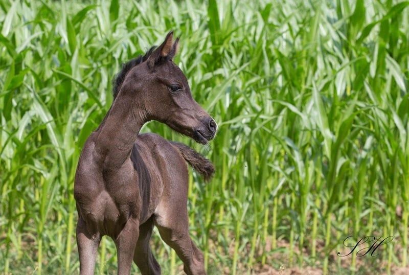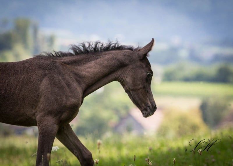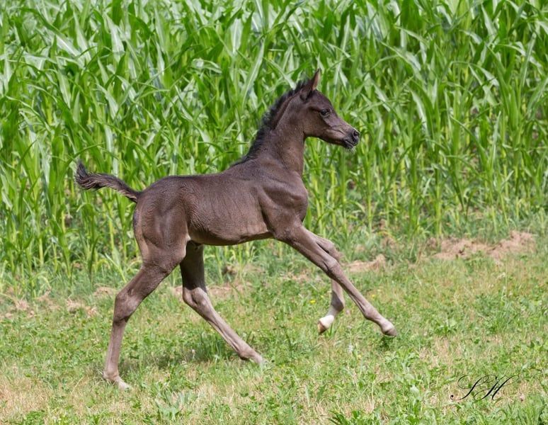 Silber Blossom Nevada ist ein wunderschönes, sehr typvolles Stutfohlen mit 94,5 % Araberblut. Sie begeistert mit edlem Kopf, ausdrucksstarker Erscheinung und sehr guten Grundgangarten. Ihr Vater, Nadir Ibn Nafida, ist gekört und hengstleistungsgeprüft. Das voraussichtliche Endmaß liegt bei ca. 1,50 m. Nevada ist sehr menschenbezogen, anhänglich und zeigt sich als charmante, süße Partnerin. Sie bietet beste Perspektiven für Zucht, Freizeit und Sport. Als Smoky Black (Rappe mit einem Creme-Gen) ist sie auch farblich besonders interessant und kann bei entsprechender Anpaarung z.B. Buckskin, Palomino oder Cremello bringen. Eine besondere Gelegenheit für Liebhaber typvoller Partbreds mit Charakter und Qualität