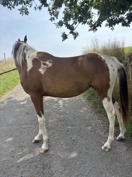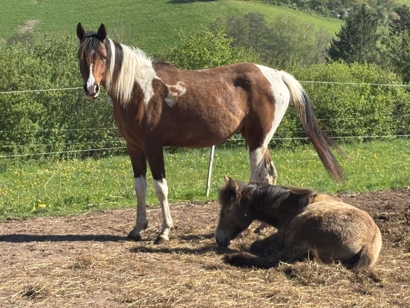 Enisa ist der größte Schatz, den ich kenne. Sie folgt einem überall hin. Bedingungslos, man kann sie als Handpferd mitnehmen, sie kennt das Fohlen ABC, geht in den Hänger, kennt den Hufschmied, ist geimpft und einfach immer sehr artig. Wir haben früher Araber gezüchtet, jetzt aber nur noch Quarter und alle Araber verkauft. Enisa wollten wir aufgrund ihres einzigartigen Charakters behalten. Ihre Mutter konnte von Kindern super geritten werden, egal ob im Wald oder auf dem Platz, ein absoluter Schatz. Sie hat etwas über 96 % Araberanteil und ist homozygote für Tobiano. Geboren ist sie Anfang März 2023. sie wird also im März drei Jahre alt. Nun zum Grund unseres möglichen Verkaufs: Sie wird in ihrer Herde sehr ausgeschlossen, sie ist der einzige Araber unter Quartern. Sie ist immer komplett verbissen, darf als letzte ans Futter und hat eigentlich kaum Rechte. Es tut mir im Herzen weh. Ich suche auf diesem Weg ein für immer zu Hause mit bestenfalls anderen netten Arabern. Wir suchen einen Mensch, der ihren liebevollen Charakter zu schätzen weiß und den Rohdiamant schleifen kann. Als Fohlen wurde sie prämiert. Bei Fragen bitte einfach anrufen oder eine WhatsApp.