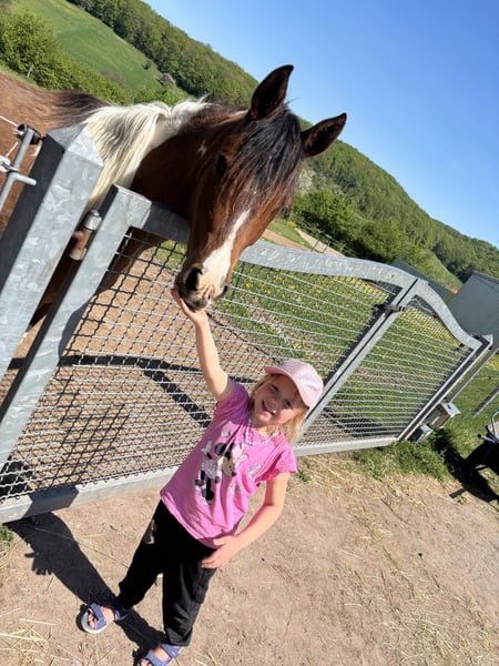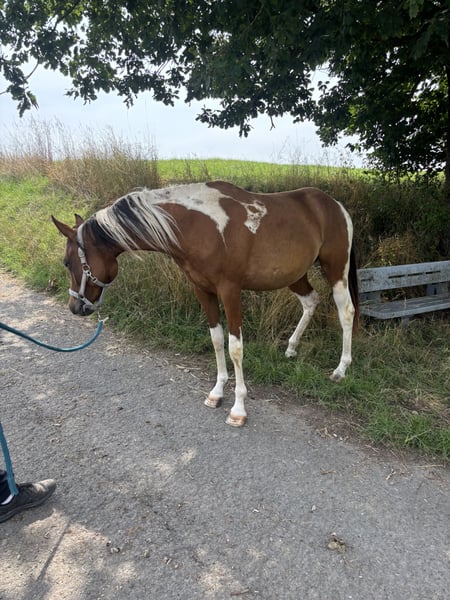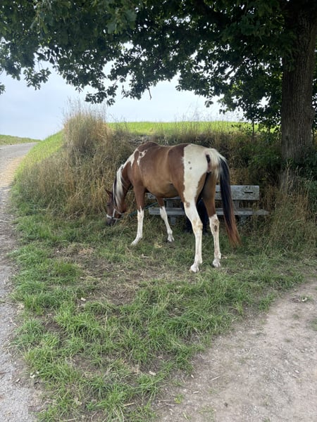 Enisa ist der größte Schatz, den ich kenne. Sie folgt einem überall hin. Bedingungslos, man kann sie als Handpferd mitnehmen, sie kennt das Fohlen ABC, geht in den Hänger, kennt den Hufschmied, ist geimpft und einfach immer sehr artig. Wir haben früher Araber gezüchtet, jetzt aber nur noch Quarter und alle Araber verkauft. Enisa wollten wir aufgrund ihres einzigartigen Charakters behalten. Ihre Mutter konnte von Kindern super geritten werden, egal ob im Wald oder auf dem Platz, ein absoluter Schatz. Sie hat etwas über 96 % Araberanteil und ist homozygote für Tobiano. Geboren ist sie Anfang März 2023. sie wird also im März drei Jahre alt. Nun zum Grund unseres möglichen Verkaufs: Sie wird in ihrer Herde sehr ausgeschlossen, sie ist der einzige Araber unter Quartern. Sie ist immer komplett verbissen, darf als letzte ans Futter und hat eigentlich kaum Rechte. Es tut mir im Herzen weh. Ich suche auf diesem Weg ein für immer zu Hause mit bestenfalls anderen netten Arabern. Wir suchen einen Mensch, der ihren liebevollen Charakter zu schätzen weiß und den Rohdiamant schleifen kann. Als Fohlen wurde sie prämiert. Bei Fragen bitte einfach anrufen oder eine WhatsApp. Bei einem tollen Zuhause gilt PLATZ VOR PREIS!