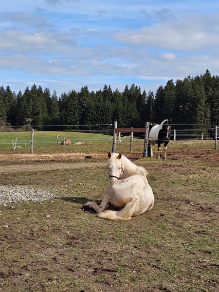 Wegen Aufgabe der Pferdehaltung ist diese bildschöne Jungstute abzugeben Palomino geb. 2023, Stm. z.Zt. 150 cm sehr lieb, sehr menschenbezogen, ruhig und ausgeglichen, nervenstark, ist noch roh, beherrscht natürlich das Fohlen-ABC, ist im Offenstall aufgewachsen hat leider ein Sommerekzem bei Fragen gerne melden