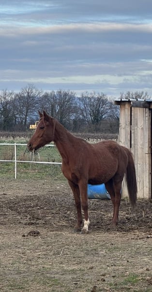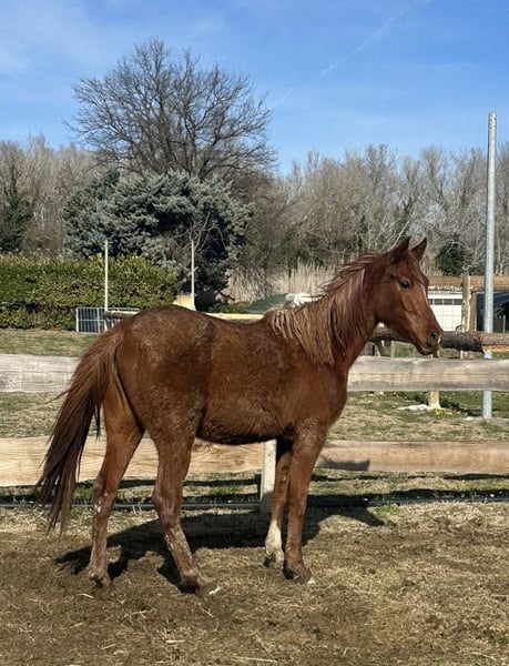 Hier ist die professionelle Übersetzung des Inserats vom Französischen ins Deutsche: --- **Halbblut Araber, Stute, geboren 2022 – Fuchs, 150 cm** Wir bieten eine wunderschöne Halbblut-Araberstute zum Verkauf an, geboren im Jahr 2022, mit ausgezeichneter Abstammung. Mit einer Größe von 150 cm besitzt sie eine harmonische und elegante Silhouette, typisch für ihre Rasse. Ihr Fuchsfell verleiht ihr ein sehr distinguierendes Erscheinungsbild. Dieses junge Pferd ist besonders geeignet für die Disziplin Ausdauer, in der sie bereits ihre große Widerstandskraft und ihre hervorragende Fähigkeit gezeigt hat, über lange Distanzen ein gleichmäßiges Tempo zu halten. Ihr ruhiges Wesen und ihre gute Erziehung machen sie zu einem gut gerittenen Partner, der bereit ist, ihre Karriere in dieser Disziplin fortzusetzen oder sich im Freizeitbereich weiterzuentwickeln. Sie befindet sich im Wachstum, ist gesund und wurde regelmäßig vom Tierarzt betreut. Ihr ausgeglichenes Temperament und ihre Motivation machen sie zu einem zuverlässigen Partner für einen erfahrenen Reiter oder einen jungen Reiter, der in der Welt der Ausdauer Fortschritte machen möchte. Zögern Sie nicht, mich für weitere Informationen oder zur Vereinbarung eines Besichtigungstermins zu kontaktieren. --- Falls Sie spezielle Wünsche haben, können wir die Anzeige gern noch anpassen.