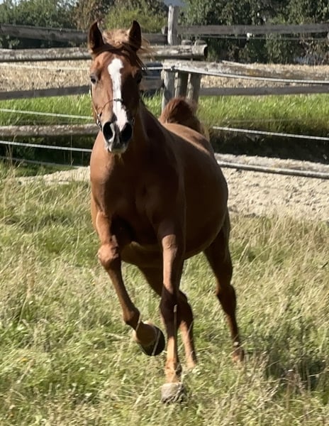 Leyana AB ist ein ganggewaltiges Partbred Stütchen mit bezaubernden Charakter. Und herausragender Nervenstärke. Ihr Vollblutaraberanteil liegt bei 75%. Mutter Lateefa AB ist auch aus unserer Zucht und Prämienstute. Sie ist mehrfach A Dressur mit mir platziert. Lilly Marlen, Holsteiner, Lateefa ABs Mutter, ebenfalls aus meiner Zucht, wurde von mir Springpferde L siegreich geritten. Ihr Vater Lamborghini Boy war ebenfalls in meinem Besitz und bis springen M erfolgreich und S Dressur. Lilly Marlens Mutter Escarda war S springen platziert und doppelte Hengstmutter. Der Vater von Leyana AB, der Vollblutaraberhengst Al Ilaf Thamin, ist mit der Note 8 leistungsgeprüft auf Station und hat auch eine sehr gute Fahrveranlagungsprüfung absolviert. Der Muttervater der Vollblutaraber Hengst FM Shah Nasaa war gekört in D und AUT und doppelt leistungsgeprüft. Mit mir im Distanzsport und auf Station. Sein Vater Nashki war ebenfalls leistungsgeprüft. Leyana AB wächst extensiv im Herdenverband bei uns im Offenstall auf. Durch die verschiedenen Untergründe haben alle unsere Pferde extrem gute Hufe. Im Sommer laufen die Pferde auf 24/7 Wiese hier im niederbayerischen Hügelland. Unsere Pferde sind dadurch sehr gut ausbalanciert, gesund und abgehärtet, Hier geht es zu unserer Web Seite: www.bavaria-pferdesport.de