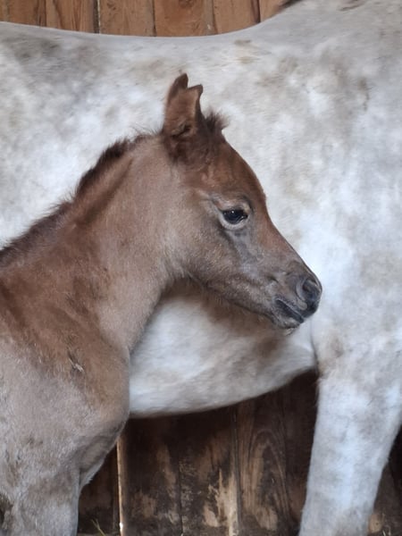 MSA Safira Partbred Arab 87,79% AV Kolor marzowy, będzie się wybarwiać na siwą Urodzona: 15.04.2026 Wzrost w kłębie ok. 150 cm Płeć: klaczka MSA Safira to wyjątkowo piękna, o wyraźnym typie klaczka w eleganckim kolorze ognistego rudawego, która w przyszłości prawdopodobnie wybarwi się na siwą. Już teraz wyróżnia się bardzo eleganckim wyrazem twarzy, dużym urokiem i harmonijnym podziałem ciała. Porusza się z naturalną lekkością, dobrym rytmem i już widocznym przestrzennym rozkładem, co stanowi doskonałe podstawy do późniejszej wszechstronnej, sportowej lub rekreacyjnej edukacji. Wysoki udział pełnej krwi arabskiej na poziomie 87,79% nadaje jej szlachetność, obecność i wyjątkowo subtelne wyrafinowanie. W przypadku poważnego zainteresowania chętnie udzielimy dodatkowych informacji. Możliwość rozłożenia płatności do momentu odbioru!