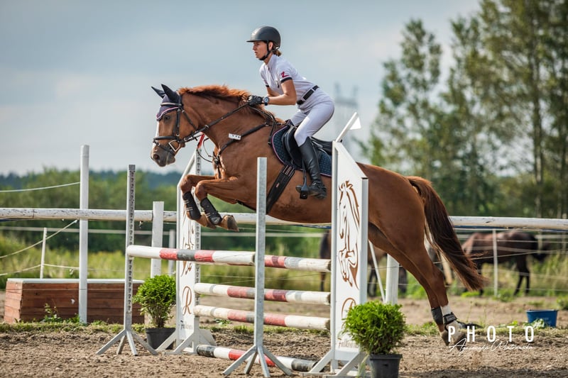Height approx. 163 cm. The horse is in excellent health - she has never suffered from colic and has never had any serious injuries. I have owned the mare for 7 years - she was trained from scratch, used regularly, and never overworked. Easy to handle on a daily basis, regularly shoed, vaccinated, and dewormed. Labria is an energetic, ambitious horse, eager to work and always moving forward. Requires a knowledgeable, balanced rider - not suitable for beginners. She has competed successfully in competitions up to 110 cm. She has the potential for higher classes with regular training. In 2018, she took 2nd place in free jumping at the Kujawsko-Pomorski Thoroughbred Performance Championship (score of 8.8 for jumping). For sale only due to lack of time - a horse with great potential who deserves further athletic development. Location - Poland Videos from training sessions and competitions available on WhatsApp :)