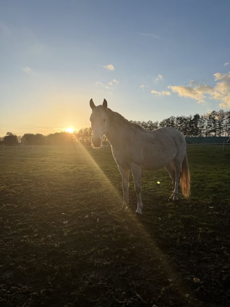 Hübsche, flotte Schimmelstute – ideal für Gelände & Distanz Ich suche für meine 12-jährige Schimmelstute Schneewittchen (ca. 1,52 m) ein erfahrenes, liebevolles Zuhause. Sie hat einen feinen, arabisch anmutenden Ausdruck, gehört laut Papieren jedoch zum polnischen Freizeitpferdetyp (pogrubiony). Schneewittchen ist ein sensibles, aufmerksames Pferd, das sich eng an ihre Bezugsperson bindet. Mit ruhiger, klarer Führung arbeitet sie sehr gern mit und reagiert fein auf Hilfen. Im Gelände ist sie flott, ausdauerstark und macht viel Freude – ideal für Reiter, die gerne längere Runden reiten oder ein Pferd für das Distanzreiten oder sportliches Gelände suchen. Beim Führen kann sie in neuen oder sehr aufregenden Situationen etwas vorwärtsdrängend werden und sucht dann Orientierung beim Menschen. Mit Ruhe und klarer Führung bleibt sie gut kontrollierbar. Sie ist kein Anfängerpferd, sondern eher für jemanden geeignet, der sensible Pferde mag und Erfahrung im Umgang mit feineren Charakteren mitbringt. In der Herde ist sie rangmittig und verträglich. Offenstall- oder Paddockhaltung mit viel Bewegung wäre optimal für sie. Preis: 4.000 € VB Standort: 15345 Zinndorf Bei ernsthaftem Interesse freue ich mich über eine Nachricht. Schneewittchen kann selbstverständlich auch probegeritten werden. 😊