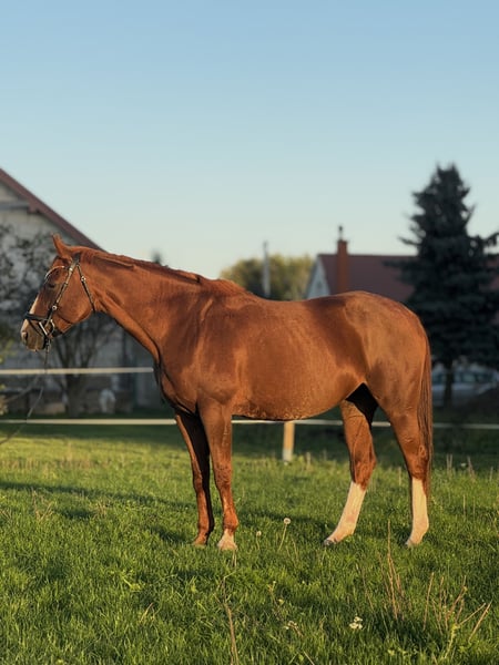 Hodowlana klacz, źrebna imponującym ogierem Casiro I ⭐️Po konkursach 120cm (w linku film z przejazdu) ⭐️Ojciec wielokrotny Mistrz Polski w skokach przez przeszkody, medalista konkursów GP oraz sześciu barier ⭐️Źrebna ogierem chodzącym 160cm oraz konkursy potęgi skoku z rezultatem 210cm, ⭐️Bardzo grzeczna w obejściu, opanowana, ⭐️Jedna z lepszych linii polskiej hodowli, ⭐️Bardzo dobra wytrzymałość, ⭐️KLACZ PO KONTUZJI, nie wymaga leczenia, wykluczona z dalszego sportu. Nada się do lekkich jazd, ⭐️Daje malowane źrebaki(ostatni-4 skarpetki i latarnia). https://www.tylkoskoki.pl/aktualnosci/512-sportowiec-ojciec-dziadek.html http://www.tower-racing.pl/ogiery/royal_court.html Opis ogiera, którym źrebna jest Jaśmina, ze strony https://sosath.com/en/stallions/detail/casiro : Casiro - the sire for rideable, clear-headed, uncomplicated horses with a lot of overview, attitude, security and ability in the course. His children are successful with professionals and amateurs worldwide in advanced level show jumping as well as hunter, dressage and eventing competitions. Description Casiro himself was successful for years with Gerd, Hendrik and Janne in the big class. After Gerd had competed with him in young horse classes, at the Bundeschampionat and at the World Championships for Young Show Jumpers in Lanaken/BEL, Hendrik collected successes with him. He showed his special scope when he directly won his first puissance class by jumping over a wall of 2.10m. Janne rode him successfully in advanced (S) level jumping for many years and won the six bars at the big Elmloher Reitertage in his last active year. Casiro has been successful from the beginning of his life. He was awarded 1c premium stallion at the Holstein licensing. In 2005, he finished an excellent 30-days test in Adelheidsdorf. In 2006, 2007 and 2008, he was victorious in several youngster classes and was vice champion at the Holsteiner championships where he also qualified for the "Bundeschampionat". He competed at the World Championship for Young Jumpers in Lanaken/BEL successfully. Janne Sosath-Hahn: “Casiro is simply fun. He always gives me a good feeling - even after a long (baby) break, I was able to ride successfully in a S-class. At home he is “like a pony”, at tournaments he wants to show that he is the boss and he is a little bit more like a stallion. But it's always just a show. When it comes to the course, he's back on track. Our dressage trainer Ulf Wiltfang is sure, that he could also be turned into a super dressage horse. But I'd rather keep the dressage riding at home.” Origin Casiro's pedigree is certainly a sight to see: he was bred from the same dam line as the World Champion Cumano, who descends from Holstein's line 318 D1, and Casiro has the foundation sires Cassini I, Landgraf and Ramiro in his pedigree. In addition, his dam Generation produced Casiro's licensed full brother, Casiro II, and the licensed stallion Quite Zero (by Quite Capitol, as well as other successful show jumpers like the successful 1.50m jumper Caplander (by Capo)/Sören von Rönne and Classic Europe (by Carthago) and the 1.35m jumper Championica (by Champion du Lys). His grand dam, Batallion B, produced the 1.50m jumper Lavada (by Lavado) and Cord Classique (by Cor de la Bryère), as well as the 1.35m jumpers LaRocca (by Lansing), Cara Colucci (by Caretello B) and Lester (by Lavall I), who was sold at a high price via the PSI auction. Batallion's daughter Innovation (by I Love You) produced the 1.35m jumper Lequito (by Leandro). The great-grand dam Variation competed successful in 1.35m classes as well. The dam line 318 D1 is one of the most successful lines the in Holstein breeding. It is the line of World Champion Cavalor Cumano (by Cassini I/Jos Lansink/BEL) and the Derby winner Boy (Eddi Macken/IRL), who is full brother of the licensed stallion Ladalco (by Ladykiller xx). Furthermore, there are following licensed stallions out of the damline: Casino (by Capitol I), Centesimo I and II (both by Cento), Counter Star (by Counter), Fokus I and II (both by Fangball), Grand Liaison (by Großfürst), Labrador (by Ladykiller xx), Landaris (by Landgraf I), Libretto (by Liguster), Resolut (by Rhythmus) and Wildfang (by Wildfeuer).