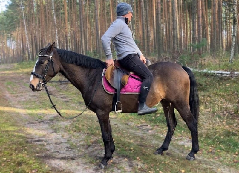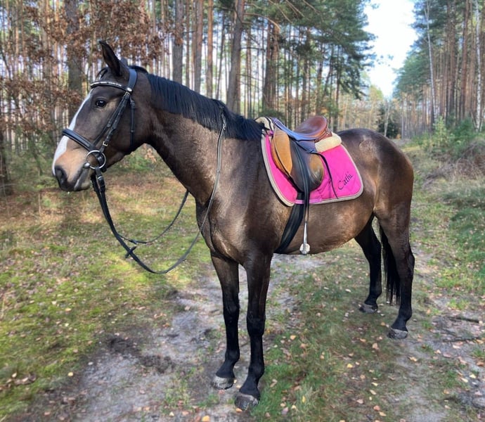 Kiara ist eine dunkelbraune Stute mit ruhigem und unkompliziertem Wesen. Sie ist angeritten und läuft alle drei Grundgangarten auf dem Platz. Im Gelände geht sie sowohl alleine als auch in der Gruppe ohne große Aufregung. Nutztiere und Maschinen kennt sie bereits und bleibt dabei gelassen. Beim Schmied und Tierarzt macht sie ordentlich mit. In der Herde ist sie unkompliziert und versteht sich mit anderen Pferden. Sie mag den Kontakt zum Menschen, lässt sich gerne putzen und zeigt sich auch im Umgang mit Kindern freundlich. Eine passende Stute für Freizeit und Familie, die sich weiter gut entwickeln wird. - Die Stute befindet sich in Polen, ca. 70 km von Görlitz entfernt. (40 Minuten) - Transport ist möglich.