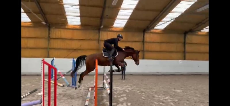 DAYANA 🔶 Mare, 5 years old 🔹 by Comme L’Etoile (Holst.) out of a mare (SP) by Bolero de Revel (Holst.) 🔶 Backed (in continuous training since April) 🔹 Well-mannered, no vices or bad habits 🔶 Suitable for sport, jumping, and breeding