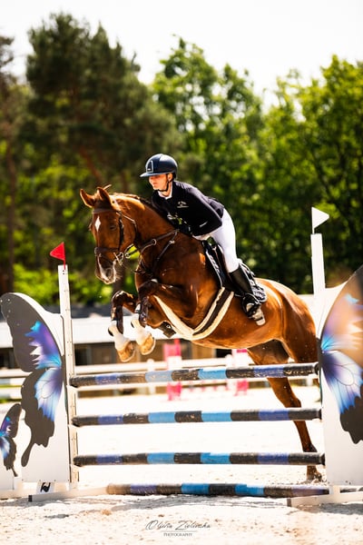 For sale: 9-year-old mare Straight from the breeder Experienced in jumping up to class P Dressage up to class C Pleasant to ride, safe, only ridden by women! Responsive and gentle to the aids, suitable for children and amateurs. She loves to jump Goes on trails and to the paddock. Healthy, shod in front. Loads easily into a trailer, small horsebox, or truck, no issues at all.
