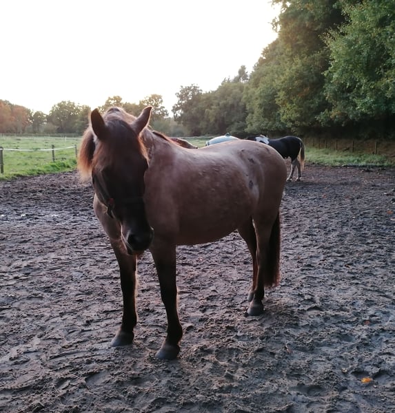 Zum Verkauf steht hier mein Friese-Dülmener-Mix Wallach Shirtan, liebevoll Django genannt. Django ist 14 Jahre alt, hat ein Stockmaß von 148cm und deckt auch größere Reiter sehr gut ab. Ich habe Django erst seit ein paar Wochen und leider haben sich bei mir persönlich die Lebensumstände so verändert das ich ihn auf Dauer nicht behalten kann. Manchmal kommt dann doch alles anders als man es sich gewünscht hat. Django stand zuvor in einer Herde mit Stuten (Kleinpferde, Großpferde und auch Shettys) derzeit steht er in einer reinen Wallachherde. Er kann somit auch in einer gemischten Herde stehen. Hier ist er eher Rangniedrig und geht ärger und stress aus dem Weg. Django ist kein Ekzemer, läuft Barhuf und hat auch sonst keine bekannten Allergien. Im Sommer stand er 24/7 im Gras (Offenstall). Bei mir habe ich ihn in der Zeit an die Box (nur Nachts) gewöhnt. Er braucht allerdings seine Zeit um wirklich anzukommen und hat gerade am Anfang Trennungsangst, wenn man mit ihm von seiner Herde weggeht. Aber er ist dennoch händelbar und geht nicht durch. Zum Reiterlichen kann ich leider nicht viel sagen, da ich ihn noch nicht geritten bin. Daher verkaufe ich ihn auch als angeritten. Ich habe Bodenarbeit mit ihm begonnen um seine Muskulatur erst wieder aufzubauen. Daher wäre ein Probereiten derzeit auch noch nicht möglich. Früher wurde er im Westernbereich Freizeitmäßig geritten und war auch hin und wieder auf kleineren EWU Turnieren im Bereich Pleasure und Trail unterwegs. Es fällt mir wirklich nicht leicht den hübschen, liebesnwerten Kerl wieder abgeben zu müssen aber er ist auch kein Notverkauf und es gilt Platz vor Preis. Sein Zubehör kann er gerne, gegen Aufpreis, mitnehmen. Da ich den Reitsport aufgeben werde ist somit allerhand vorhanden. Django wird zudem nicht an Reitschulen vermittelt, da er einfach eine feste Bezugsperson benötigt. Auch Händler bitte ich von Anfragen abzusehen.