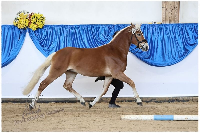 Angeber SCH – Süddeutsch gekörter Sporthengst mit Top-Abstammung Geboren: 03.05.2023 | PSSM1: n/n frei Abstammung: PH/LH Andoro SCH x E/SP Elena (Staatsprämie) Angeber SCH ist ein vielversprechender, süddeutsch gekörter Hengst, der die Körkommission Mitte November 2025 mit seinem sportlichen Typ, hervorragenden Grundgangarten und athletischem Auftreten überzeugte. Sein Vater Andoro SCH war Sieger der Hengstleistungsprüfung, ist mehrfach erfolgreich in Dressur, Springen und Gelände, und stellt bereits Leistungsprüfungssiegerinnen, wie Mai Andora, sowie Staatsprämienstuten in der Nachzucht. Andoro SCH hat zudem seinen ersten süddeutsch gekörten Sohn: Angeber SCH. Mutter E/SP Elena ist Staatsprämienstute, stellte mehrere Championatsfohlen und brachte u. a. den mitteldeutschen Körungssieger 2019 hervor. Aufwachsen & Charakter: Artgerecht im Herdenverband aufgewachsen Sommer: großzügige Weiden, Winter: Laufstall mit täglichem Koppelgang Schmiede- und verladefromm, brav und entspannt in fremder Umgebung Regelmäßig geimpft und entwurmt Ausbildung & Sportliches Potenzial: Bereits longiert und vertraut mit Freispringen Typvoller, leistungsbereiter Hengst mit viel Bewegungsqualität Ideal für Sport, Freizeit oder weiterführende Ausbildung Angeber SCH vereint Typ, Sportlichkeit und hervorragenden Charakter und bietet sowohl im Zuchtbereich als auch für den ambitionierten Freizeit- oder Nachwuchssportler maximales Potenzial. Für seine weitere Ausbildung wird ein Besitzer mit Erfahrung im Umgang mit Jungpferden empfohlen.