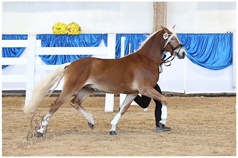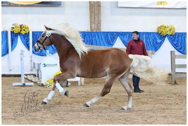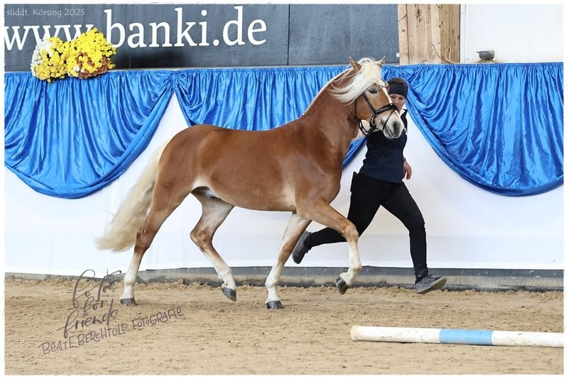 Angeber SCH – Süddeutsch gekörter Sporthengst mit Top-Abstammung Geboren: 03.05.2023 | PSSM1: n/n frei Abstammung: PH/LH Andoro SCH x E/SP Elena (Staatsprämie) Angeber SCH ist ein vielversprechender, süddeutsch gekörter Hengst, der die Körkommission Mitte November 2025 mit seinem sportlichen Typ, hervorragenden Grundgangarten und athletischem Auftreten überzeugte. Sein Vater Andoro SCH war Sieger der Hengstleistungsprüfung, ist mehrfach erfolgreich in Dressur, Springen und Gelände, und stellt bereits Leistungsprüfungssiegerinnen, wie Mai Andora, sowie Staatsprämienstuten in der Nachzucht. Andoro SCH hat zudem seinen ersten süddeutsch gekörten Sohn: Angeber SCH. Mutter E/SP Elena ist Staatsprämienstute, stellte mehrere Championatsfohlen und brachte u. a. den mitteldeutschen Körungssieger 2019 hervor. Aufwachsen & Charakter: Artgerecht im Herdenverband aufgewachsen Sommer: großzügige Weiden, Winter: Laufstall mit täglichem Koppelgang Schmiede- und verladefromm, brav und entspannt in fremder Umgebung Regelmäßig geimpft und entwurmt Ausbildung & Sportliches Potenzial: Bereits longiert und vertraut mit Freispringen Typvoller, leistungsbereiter Hengst mit viel Bewegungsqualität Ideal für Sport, Freizeit oder weiterführende Ausbildung Angeber SCH vereint Typ, Sportlichkeit und hervorragenden Charakter und bietet sowohl im Zuchtbereich als auch für den ambitionierten Freizeit- oder Nachwuchssportler maximales Potenzial. Für seine weitere Ausbildung wird ein Besitzer mit Erfahrung im Umgang mit Jungpferden empfohlen.
