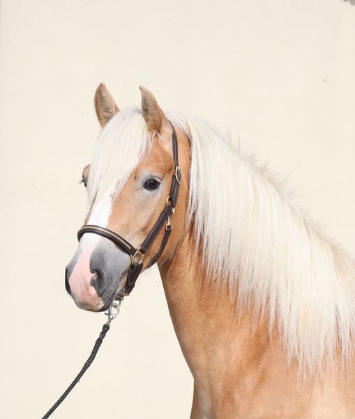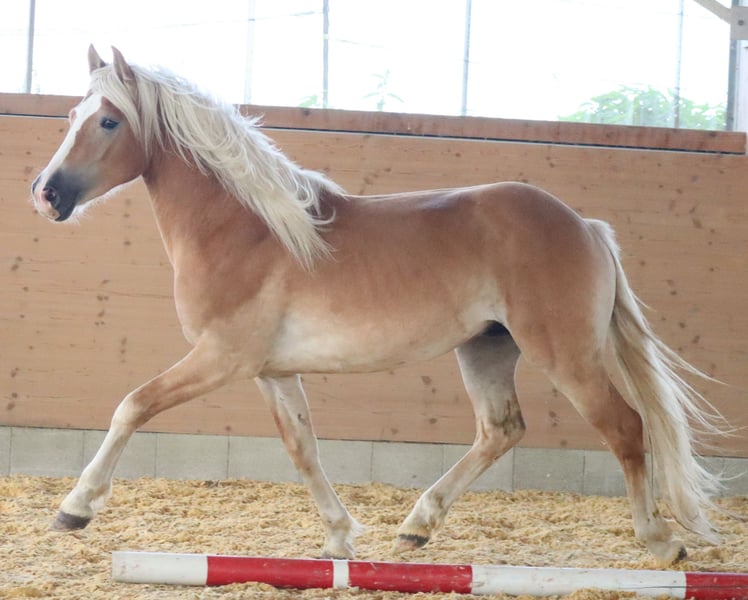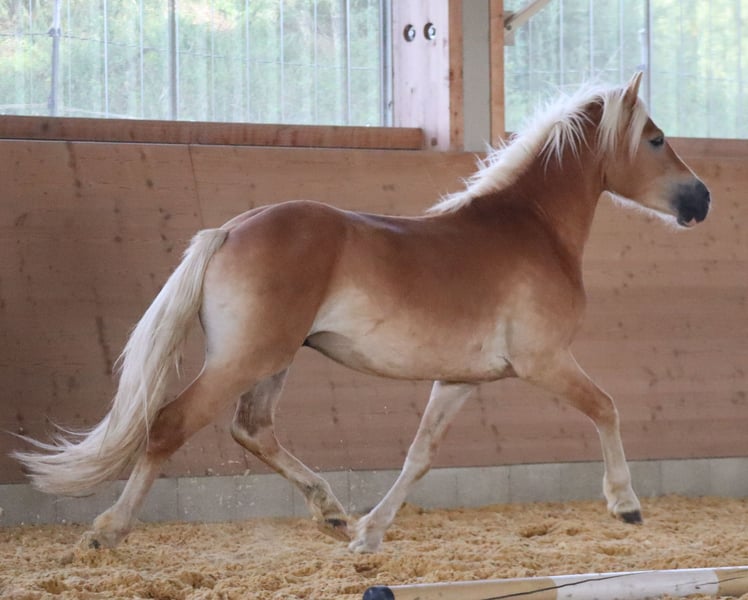 Bruce – Young Edelbluthaflinger Gelding with Excellent Pedigree & Promising Future Born on April 16, 2023, Bruce presents as a well-mannered, typy Edelbluthaflinger gelding standing approximately 147 cm at the moment. He has been raised appropriately in a herd environment and enjoys summers on spacious pastures as well as winters with his friends in a box stall with all-day turnout – ideal conditions for healthy and balanced development. 🧹 Handling & Basic Training Bruce is familiar with and confidently masters all foal basics: grooming, washing, leading, tying, and hoof handling are performed calmly and reliably. He impresses with his calm and pleasant demeanor in daily handling. 🧬 Outstanding Pedigree Sire: LH Barion – Reserve Champion Stallion at the South German licensing 2021 – Reserve winner of the stallion performance test with a score of 8.46 – Produces numerous champion foals Dam: SP Gabi (by Amaryl out of Greti by Aggenstein) Full sister: – Outstanding winner of Edelbluthaflinger mare class at the regional foal championship This exceptional lineage and family success story give Bruce an excellent foundation and great sporting potential. ⚡ Special Features Bruce can be delivered to his new home upon request and at the buyer’s expense. 🎯 Prospect Bruce is ideally suited for breeders and ambitious leisure or young riders who value a healthy, well-socialized young horse with an excellent character and noble pedigree.