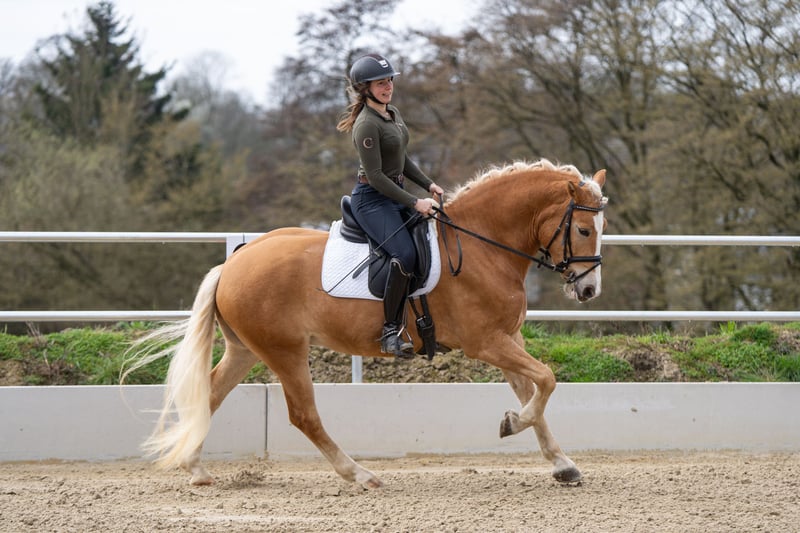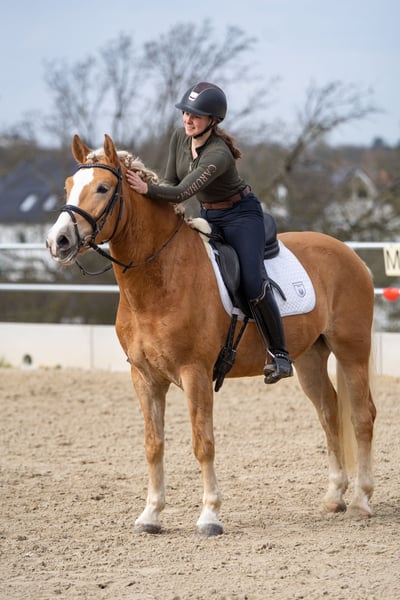 Zum Verkauf steht mein 5 jähriger Edelbluthaflinger Wallach, ca. 156 cm Stockmaß. Er überzeugt durch seinen freundlichen und aufgeschlossenen Charakter. Mit seinem typvollen Erscheinungsbild, der hellen Mähne und seinem harmonischen Körperbau ist er ein echter Blickfang. Er ist dem Alter entsprechend ausgebildet und zeigt sich lernwillig und aufmerksam. Er eignet sich sowohl für ambitionierte Freizeitreiter, als auch für Reiter mit Turnierambitionen. Er läuft aktuell 2 Mal in der Woche bei uns im Schulbetrieb mit und springt auch schon einen kleinen Parcours. Im Umgang ist Nevio brav, er kennt die grundlegenden Abläufe im Stall und lässt sich gut händeln. Er ist Schmiede- und Verladefromm. Er wird regelmäßig geimpft und entwurmt. Bei Interesse und für weitere Fragen freue ich mich über eine Nachricht. Ein Kennenlernen und Probereiten ist nach Absprache möglich. Anfragen gerne unter: 015758505710