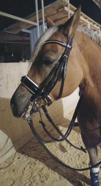 Schweren Herzens suche ich ein neues Zuhause für meine liebe, im Reitponytyp stehende Haflingerstute mit wunderschöner langer Mähne (1,47m). Die Stute ist sehr fein zu reiten und geht leicht durchs Genick. In der Dressur ist sie bis L platziert. Im Training wurde schon mit M-Lektionen begonnen. Sie springt auch gerne und mit schönem Sprungablauf bis A-Höhe. Ausreiten gehen kann man mit ihr sowohl alleine als auch in der Gruppe. Außerdem ist sie sehr gut in Boden-/Freiarbeit und im Gelassenheitstraining bzw. Working Equitation ausgebildet. Sie kann auch von Kindern geritten werden und zeigt sich hierbei sehr vorsichtig. Somit wäre sie auch als Lehrpferd für eine Familie geeignet. Das Zubehör (Dressursattel, Springsattel, Trense, Decken usw.) können gegen einen Aufpreis gerne mitgekauft werden. Bei Interesse gerne melden, ich kann auch gerne weitere Fotos/Videos schicken. Zur Vorbeugung von Reittourismus fällt für Probereiten eine Gebühr von 30 Euro an.