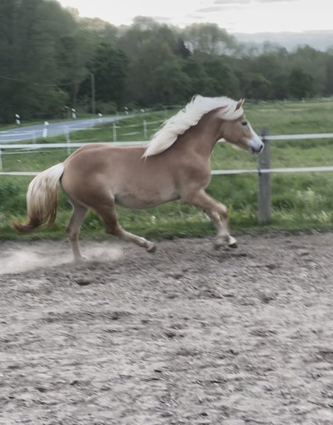 Ich verkaufe schweren Herzens meine 3 jährige Haflingerstute weil sie leider nicht groß genug für mich geworden ist. Sie ist das erste Fohlen aus meiner Melina, mit der ich bis Klasse M unterwegs gewesen bin. Maila ist eine sehr freundliche, menschenbezogene und energiegeladene Stute. Sie will immer alles richtig machen und kennt bereits Sattel, Trense und Longieren. Bisher habe ich sie nicht angeritten, falls gewünscht wäre es aber kein Problem. Sie kennt den Schmied und Anhänger fahren ist auch kein Problem. Ich wünsche mir für sie ein tolles neues Zuhause in dem Sie mit ihrem neuen Reiter viel lernen und Spaß haben kann. Wie ihre Eltern bringt sie Gehfreude, Motivation und Lernwille mit. Besonders für die Dressur, aber auch fürs Springen wird sie sich gut eignen. Sicherlich kein Anfängerpferd aber bei richtiger Förderung ein absolutes Spassmobil!