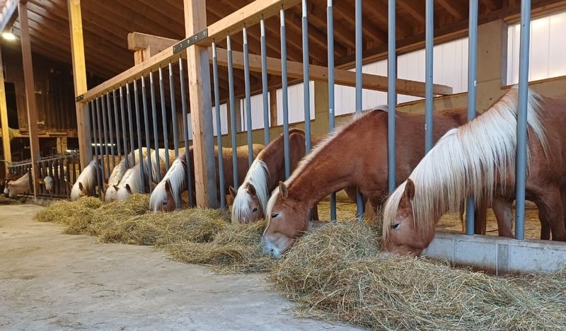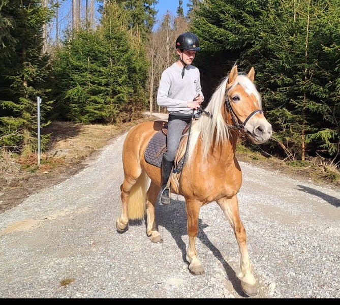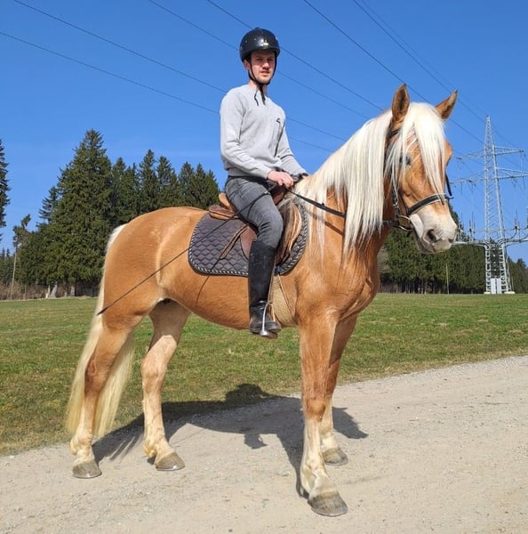 Alois is looking for a new home. Alois is an elegant 4-year-old affectionate gelding with a lot of movement. Due to his balanced character, he is suitable as a leisure horse, whether for riding or driving, and he can certainly be further developed for sports, as some from his lineage have already proven. Alois has been backed for trail riding and has already been driven in a pair. All our horses grow up in a herd on our premises, spending the summer on a large pasture and the winter in a stable with ample turnout. If you are looking for a young talented horse that your whole family can enjoy, then Alois is definitely worth a visit. We are a family-run business that has been breeding Haflingers for 50 years in the 3rd generation. Not looking for a gelding? With us, you will also find older mares or yearlings, as well as 3-year-old mares that will be presented in the spring. Our mares are all ridden and driven in the field, in the winter with a sled and in the summer with a marathon carriage. If you are interested, we look forward to introducing you to a loving young Haflinger gelding.