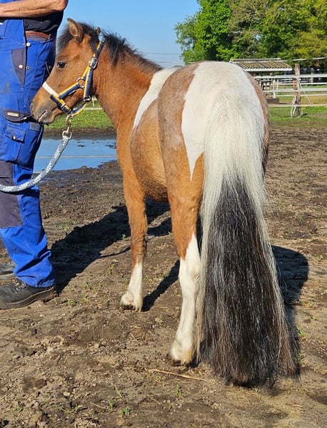Aufgrund der Verkleinerung unserer Zucht aufgrund von Gesundheitsproblemen bieten wir einige unserer reinrassigen Falabella-Pferde zum Verkauf an. Foto 1 & 2: Hooidonkhofs F. Antonio (Hengst) – geboren am 17. Mai 2024 – Farbe: schwarzes Appaloosa – Antonio belegte bei der Falabella-Zuchtprüfung des European Falabella Studbook im August 2025 mit 82 Punkten den ersten Platz bei den Junghengsten (erste Prämie / Gold). Er fiel durch sein schönes Aussehen, seine hervorragenden Gänge und seine geringe Größe besonders auf. Foto 3, 4 & 5: Hooidonkhofs F. Téa Serafina (Stute) – geboren am 16. April 2023 – Farbe: Braun-Pinto – Serafina erhielt bei der Falabella-Körung des European Falabella Studbook im August 2023 als Fohlen eine erste Prämie / Gold. Beide Pferde sind mit ihren Impfungen auf dem neuesten Stand. Sie werden regelmäßig beschlagen und täglich von Hand geführt. Sie sind beim European Falabella Studbook registriert.
