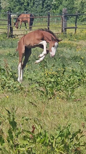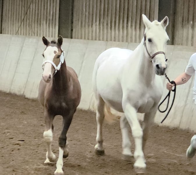 Zum Verkauf aus eigener Zucht: Cuba Libre, unser wunderschöner, auffällig gefärbter Hengstfohlen (Closer x L'Artiste). Geboren am 05.05.2025. Cuba Libre ist schön, lieb, anhänglich, sozial und menschenbezogen – wirklich das Prototyp-Freiberger. Seine Mutter Luna ist die allerliebste Freiberger-Stute, sehr ausgeglichen im Kopf und vielseitig talentiert. Sein Vater Closer ist ein äußerst angenehmer, unkomplizierter und prachtvoller, zugelassener Freiberger-Hengst, der wirklich alles kann: Springen, Dressur, Kutschfahrten vor der Kutsche, ohne Sattel – er macht alles mit Begeisterung. Es ist daher zu erwarten, dass Cuba Libre zu einem angenehmen, unkomplizierten und vielseitig einsetzbaren Freiberger heranwachsen wird. Selbstverständlich besteht die Möglichkeit, dass Cuba Libre hier noch in der Aufzucht bleibt, um gemeinsam mit seinen Altersgenossen aufzuwachsen. Weitere Informationen? Wir beantworten gerne Ihre Fragen. Fragen nur nach dem Preis werden wir nicht mehr beantworten.