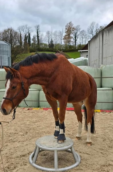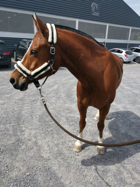 C’est le cœur lourd que je recherche une nouvelle famille pour Marieno. Marieno est un compagnon de loisir sensible et motivé. Il a été monté en allures walk, trot et galop. Il a déjà acquis quelques expériences en dressage et apprécie énormément le travail avec des barres. Il connaît le terrain en groupe ou en solo, mais il lui faut un cavalier calme et sûr de lui. Marieno est un hongre sincère et très attaché à l’humain, qui souhaite plaire dans son travail. Il sait également charmer avec ses beaux yeux de faon ! Cependant, il n’est pas adapté aux cavaliers débutants. Prix négociable. Si vous êtes intéressé, je serai ravi de recevoir votre contact et de vous fournir de plus amples informations.