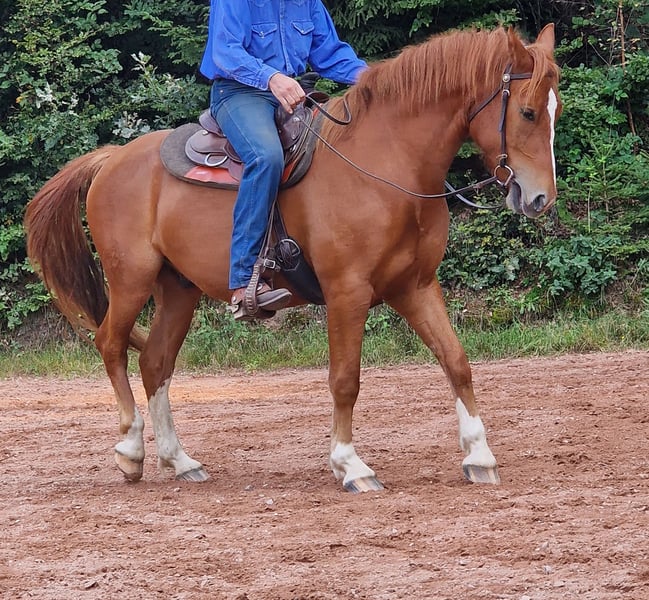 **Freiberger ruin te koop, in april 5 jaar oud geworden** Te koop is een prachtige, robuuste Freiberger ruin, geboren in 2020, met een schofthoogte van ongeveer 1,60 m. Als veulen negatief getest op PSSM1. Ik heb hem als afsetter gekocht na zorgvuldige zoektocht en research, rechtstreeks van de Zwitserse fokker, geen slachtveulen! Hij was in augustus 2020 op de veulenkeuring en heeft deze afgesloten met 7/6/8. 6,25% vreemd bloed, dus eerder een van de sterke soort met een rustig karakter. Een AKU is momenteel nog niet beschikbaar, maar kan natuurlijk tegen kostenvergoeding worden uitgevoerd. Sinds hij in mijn bezit is, is er nooit een ziekte of iets dergelijks geweest. Hij is op 4-jarige leeftijd 5 maanden in westerntraining geweest. De eerste twee maanden is er alleen grondwerk gedaan, daarna is hij voorzichtig onder het zadel gebracht. Er is een video beschikbaar. Sindsdien wordt hij recreatief gereden in het terrein, waarbij hij zich altijd netjes gedraagt en goed meewerkt. Altijd vriendelijk, geen bokker, bijter of steigeren. Aangezien hij een jong paard is, is het natuurlijk wel aan te raden om geen absolute beginner te zijn. Liggen, op een podium stappen, banden trekken, inparkeren, enz. heeft hij in de training geleerd, evenals fijn op de hulpen rijden. Dit moet weer iets geactiveerd worden door een ervaren ruiter. Deze charmante ruin is uitstekend geschikt voor recreatief rijden en trektochten. Vrachtwagenvriendelijk, blootsvoets, staat netjes bij de smid. Wordt regelmatig ontwormd en na ZSE ontwormd. Zeer goed in de kudde, niet ranghoog, maar laat zich ook niet de boter van het brood nemen. Hij staat momenteel van de lente tot de herfst op weilanden, in de winter in een open stal, 24/7 hooi met net. Ik kijk uit naar je bericht en stuur graag foto's en video's door. Graag een kort bericht met een voorstelling en je telefoonnummer. Dan neem ik graag contact met je op via WhatsApp. :-)