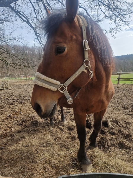 Liebe ehemalige freiberger zuchtstute sucht einen gnadenplatz,da sich die Besitzerin die einstellkosten nicht mehr leisten kann. Die Liebe Maus ist 14 Jahre aber nicht reitbar,da sie eine stark verknöcherte arthrose im Karpalgelenk hat. Sie geht öfters Lahm,ist aber mit Schmerzmittel gut einstellbar. Sie kann sich noch ablegen,freudenbuckler loslassen und lässt sich gerne betüddeln.