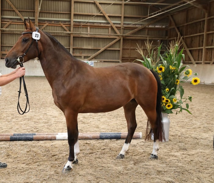 Barina ist eine sehr liebe und hübsche Stute. Sie ist sehr unerschrocken, sehr einfach im Umgang, geht alleine und in der Gruppe ins Gelände und ist verkehrssicher. Sie eignet sich als Pferd für die ganze Familie. Barina ist trächtig für 2026. Abstammung: Navarino / Erode