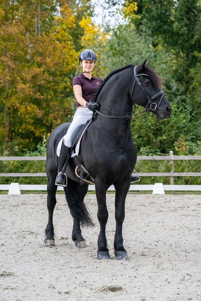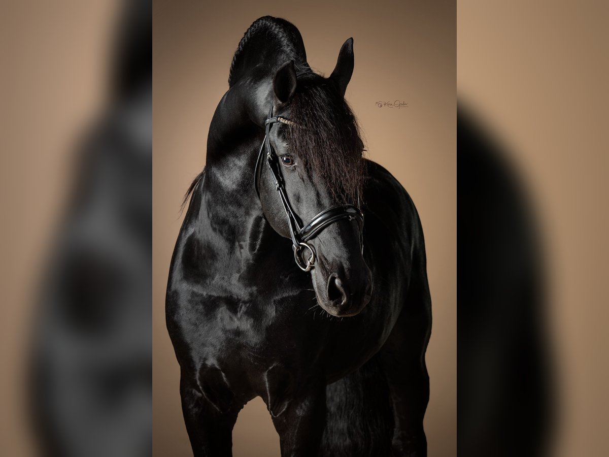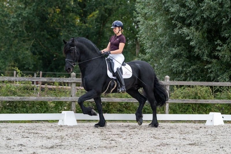 Wimpie ist unser Stallkönig: würdevoll und beeindruckend, mit einem wunderschönen Hals, wie man ihn kaum noch sieht. Er ist leicht zu handhaben und ein echter Arbeitstyp. Er ist ein Sterhengst und hat im vergangenen Jahr sein Sportprädikat erhalten. Wimpie wird professionell von der erfahrenen Tour-Reiterin Annet Veen ausgebildet und hat mit zwei Reitern die Z-Dressur absolviert. Er bewegt sich äußerst kraftvoll, besitzt einen traumhaften Galopp, zeigt schöne (noch etwas grüne) Wechsel und verfügt über viel Talent für höherklassige Aufgaben. Sein Vater ist Gerben 479, und Wimpie stammt aus einer Top-Mutterlinie: Seine Mutter Fleur van Visser ist Ster, Kroon und Sport, die Großmutter Seija van de Olde Mette Moate ist Ster, Preferent und Sport, und die Urgroßmutter Femke Oo ist Kroon, Preferent und Prestatie. Wimpie ist seit seinem dritten Lebensjahr bei uns und stets kerngesund, nie krank oder lahm gewesen. Er strahlt viel aus, zeigt kaum Hengstverhalten und ist vollständig entwurmt, geimpft und bereit für den nächsten Schritt. Er hat starke Beine und wurde bereits röntgenologisch untersucht; eine erneute Untersuchung ist auf Kosten des Käufers möglich. Eine einzigartige Gelegenheit, einen äußerst schönen und erfahrenen Friesenhengst mit bewiesenem Sporttalent, großartigem Charakter und ausgeprägter Arbeitseinstellung zu erwerben! Wimpie befindet sich in Appingedam und fällt in die höhere Preisklasse. Weitere Infos & Videos: 06-40918538
